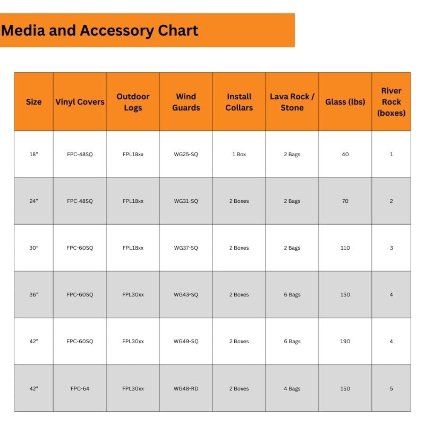 Accessories to go with your fire pit. Use the media & accessory chart to make sure you choose the right size accessory for your fire pit.