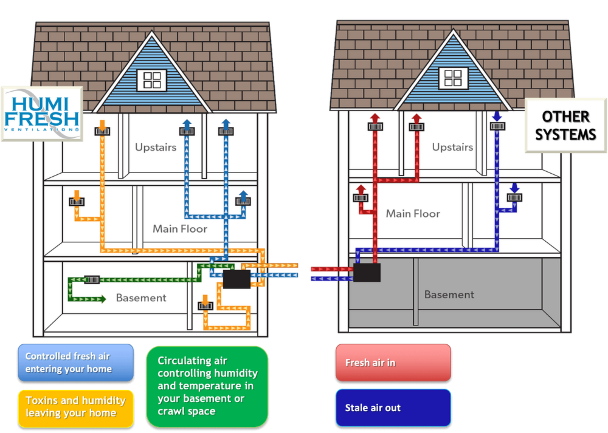 7.The added benefit of the Humifresh Hybrid 200 circulated air to the basement or the crawlspace. This air mass helps control the lower level’s air quality and virtually eliminates humidity.