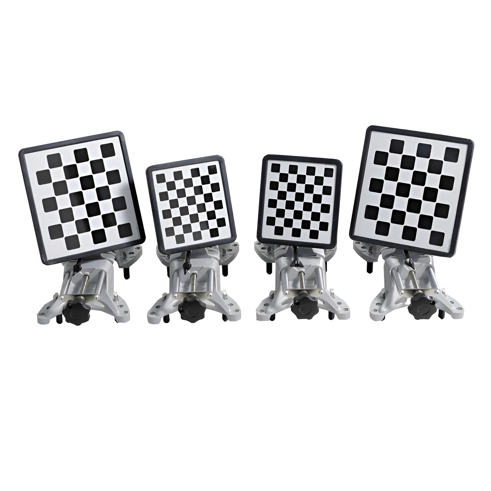 Includes wheel clamps (15”-27”), targets, storage stands, and accessories