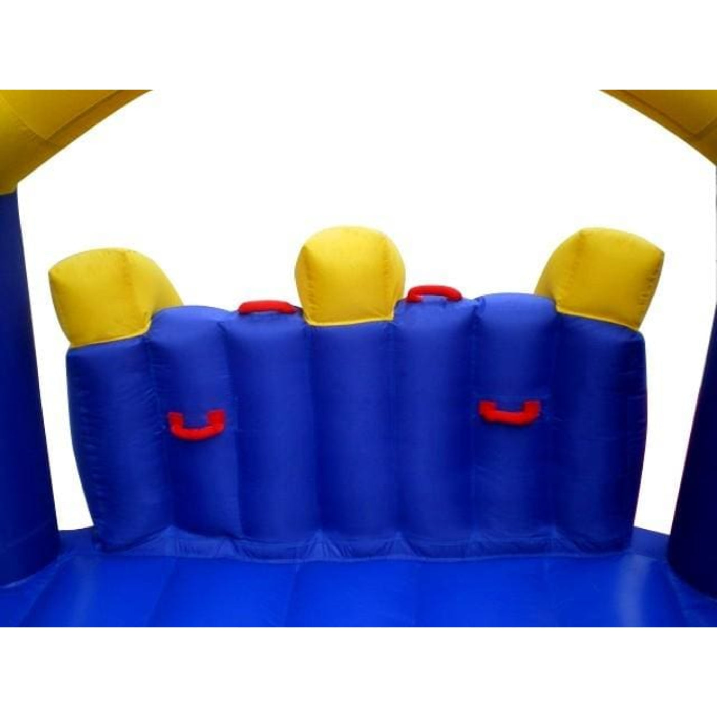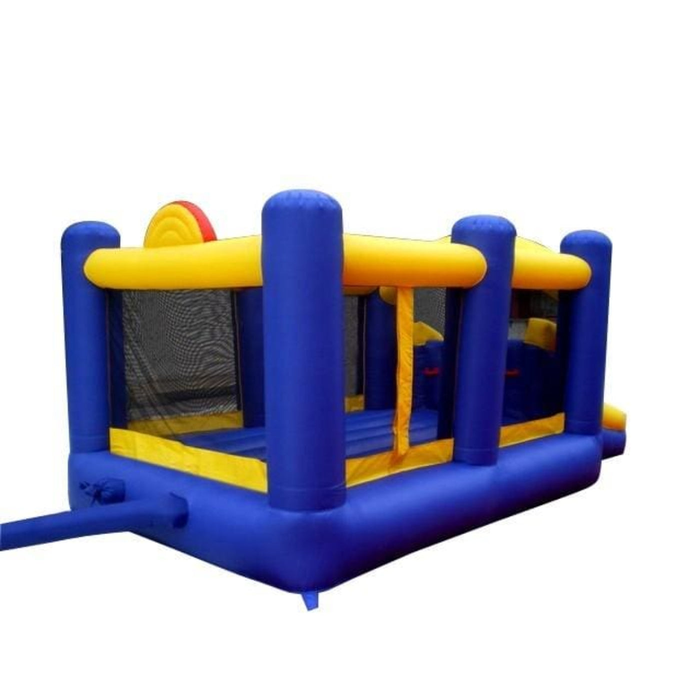 The Island Hopper Racing Slide and Slam Bounce House is more fun than ever. The two slides encourage fun and allow two kids to race down the slides at the same time. The basketball hoop inside allows for basketball bounce house fun. This bounce house is a great size for back yard bouncing or indoor rainy day fun. The 7’ high design fits in most bedrooms, rumpus rooms and garages.