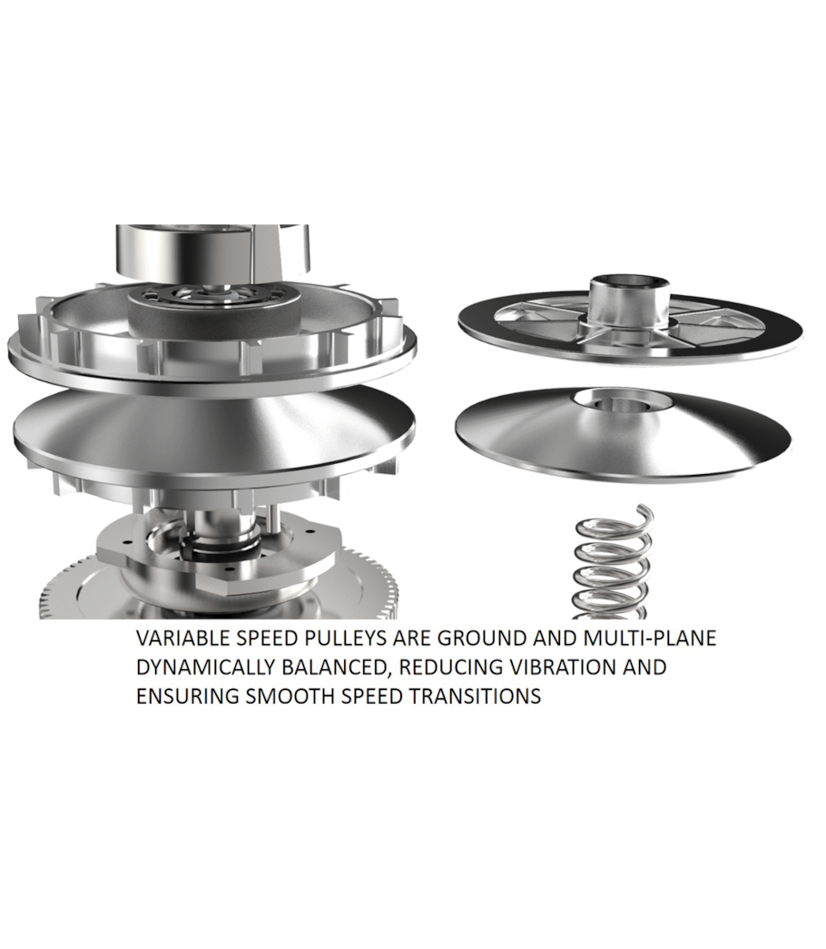 • Variable speed pulleys are ground and multiplane dynamically balanced, reducing vibration and ensuring smooth speed transitions
