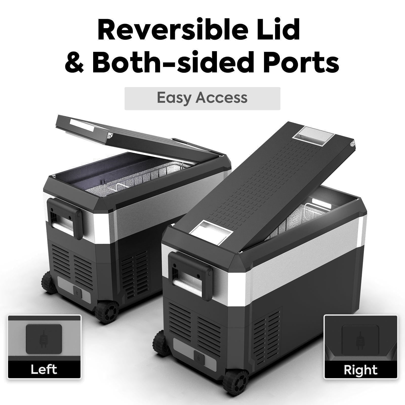 Portable Refrigerator - The JPPro Series features two types of handles and wheels located on the opposite side, providing easy maneuverability on most surfaces. With a 40° tilt anti-vibration function, your food and drinks are kept safe and secure. Plus, its lightweight construction makes it easy to transport on any adventure.