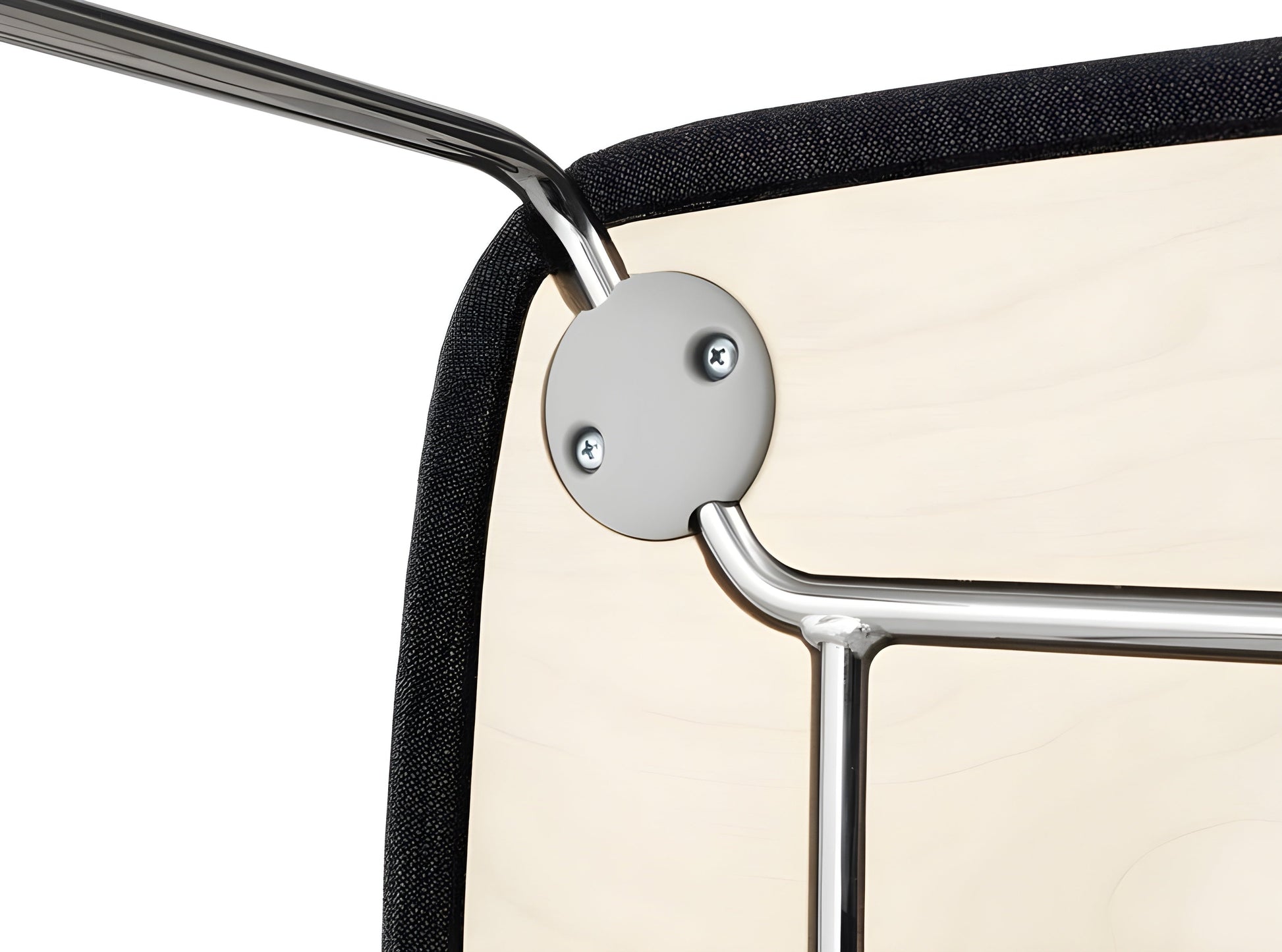 A: Upholstered seat with a sturdy molded shell and metal base.