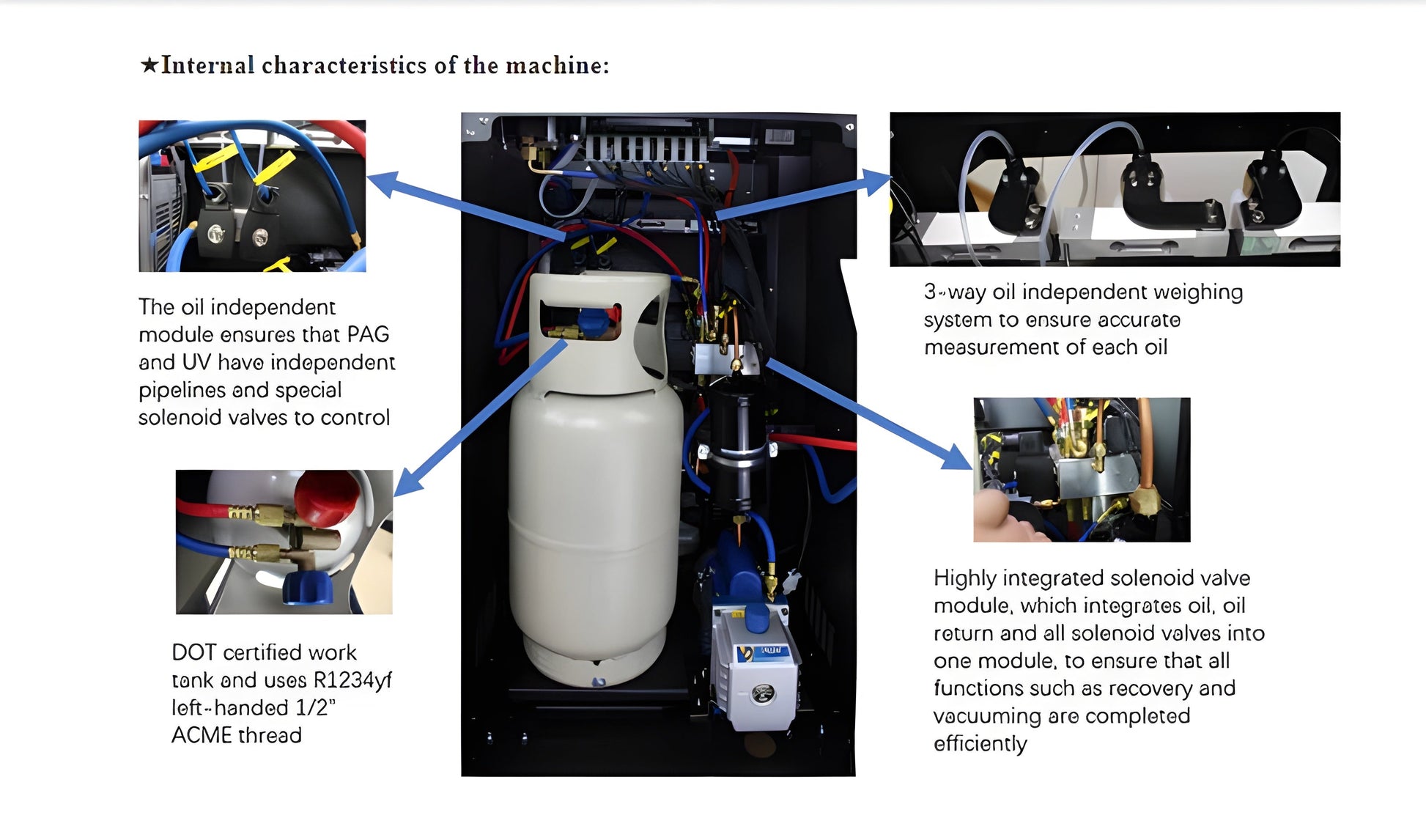 A: It automatically recovers, recycles, and recharges refrigerant.
