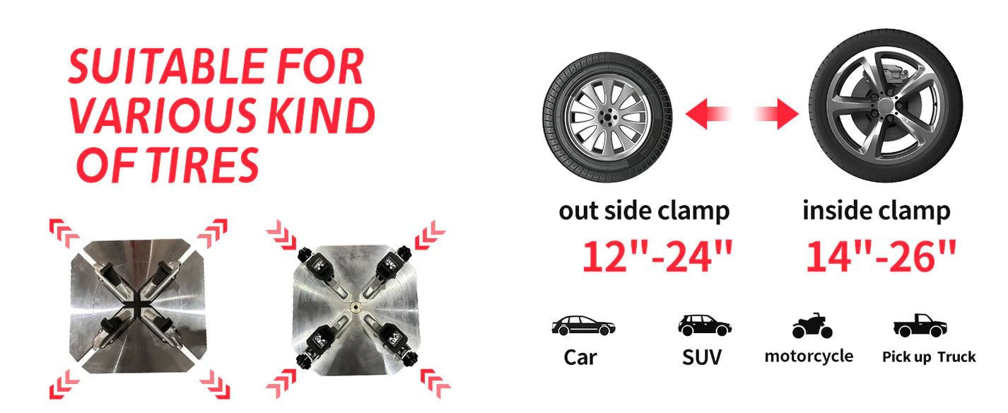 Ergonomic design with pedal-controlled inflation, pull-type pedal system, and strong alloy steel jaws make tire changes smooth and simple.