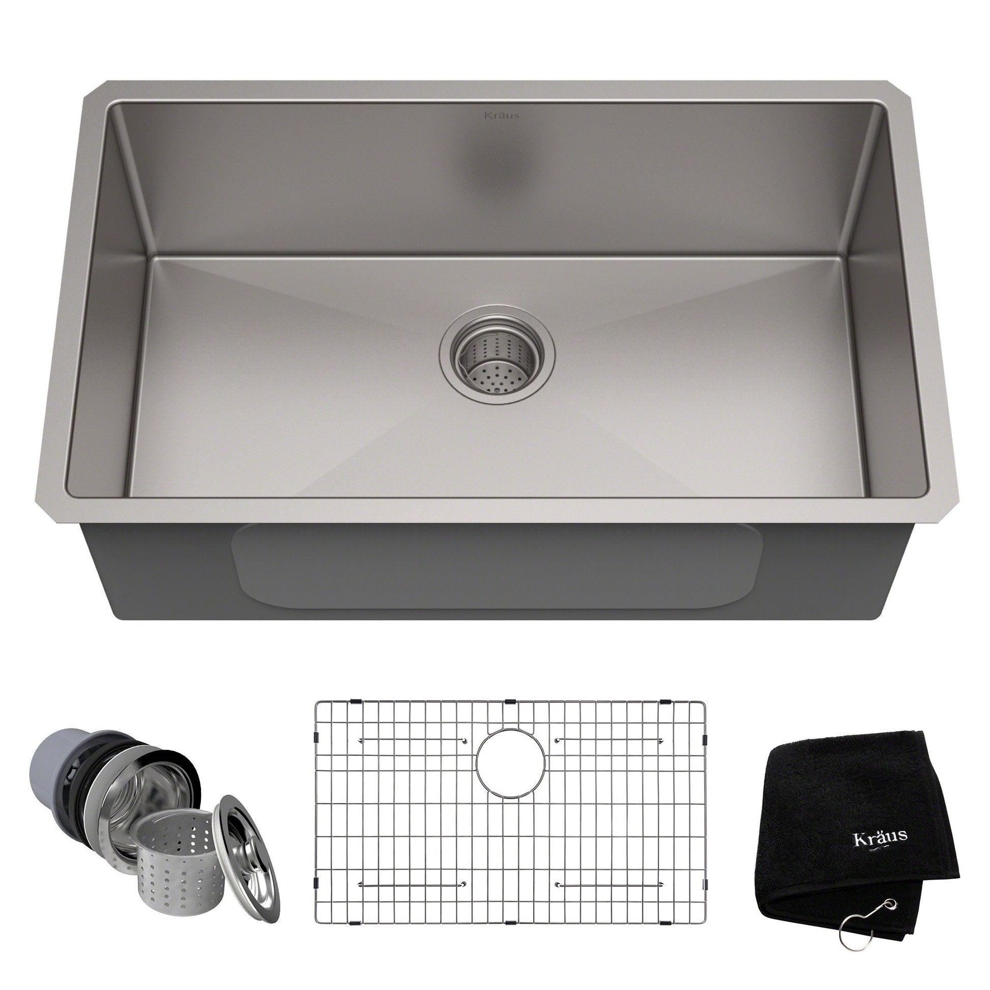 KRAUS 30" Undermount 16 Gauge Single Bowl Stainless Steel Small Radius Kitchen Sink - KHU100-30