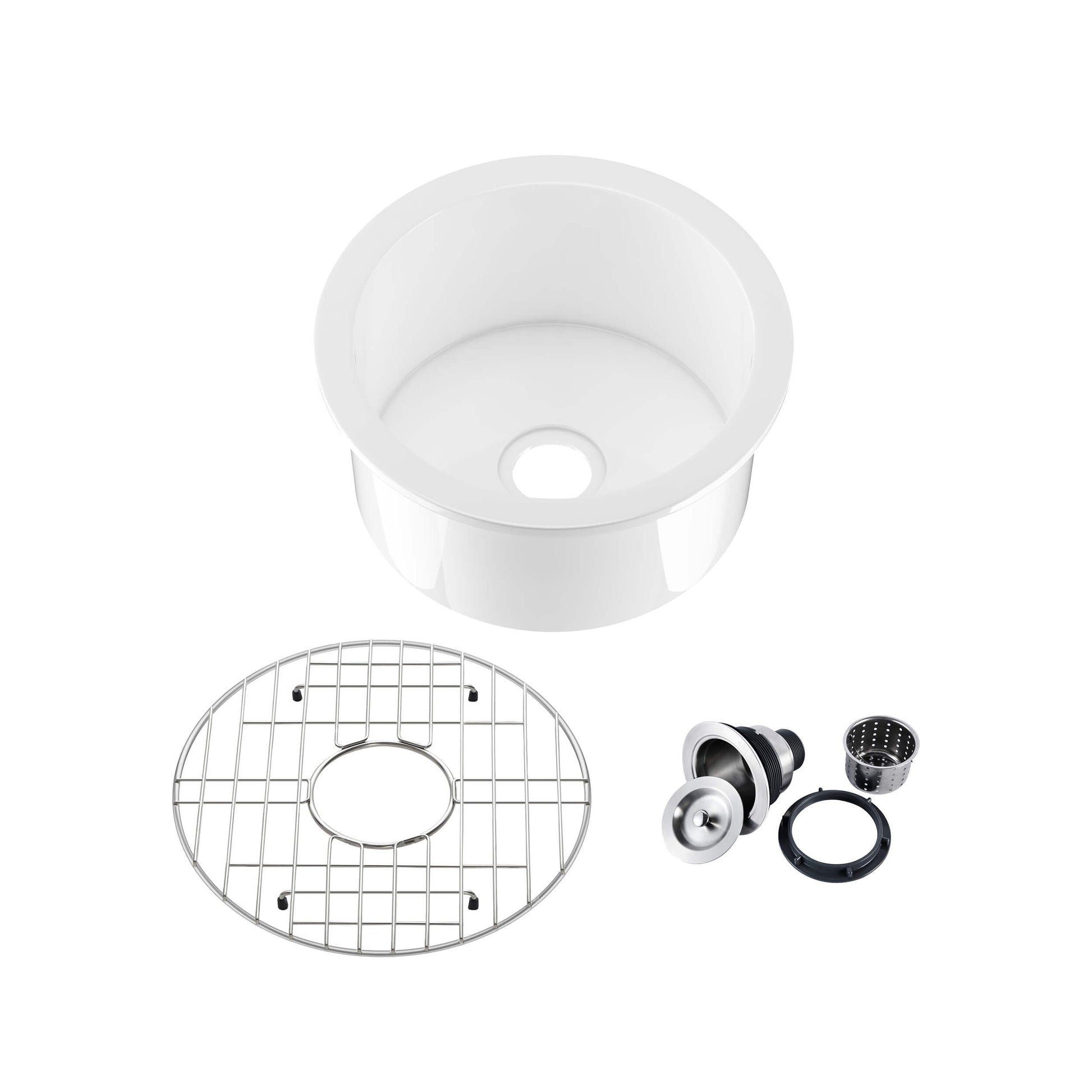 A: A 19" round undermounted kitchen sink made from premium fireclay with a glossy white finish, offering both functionality and modern style.