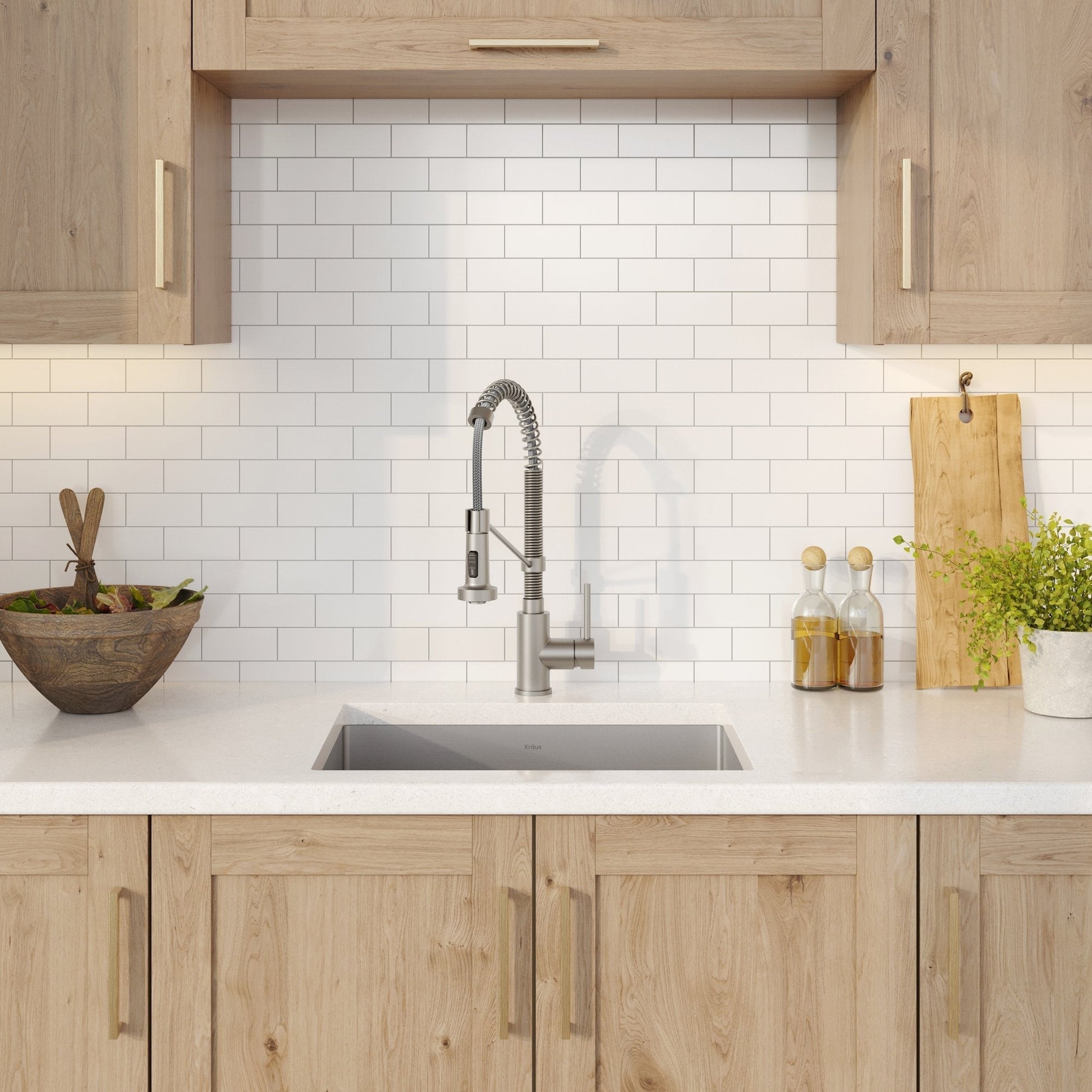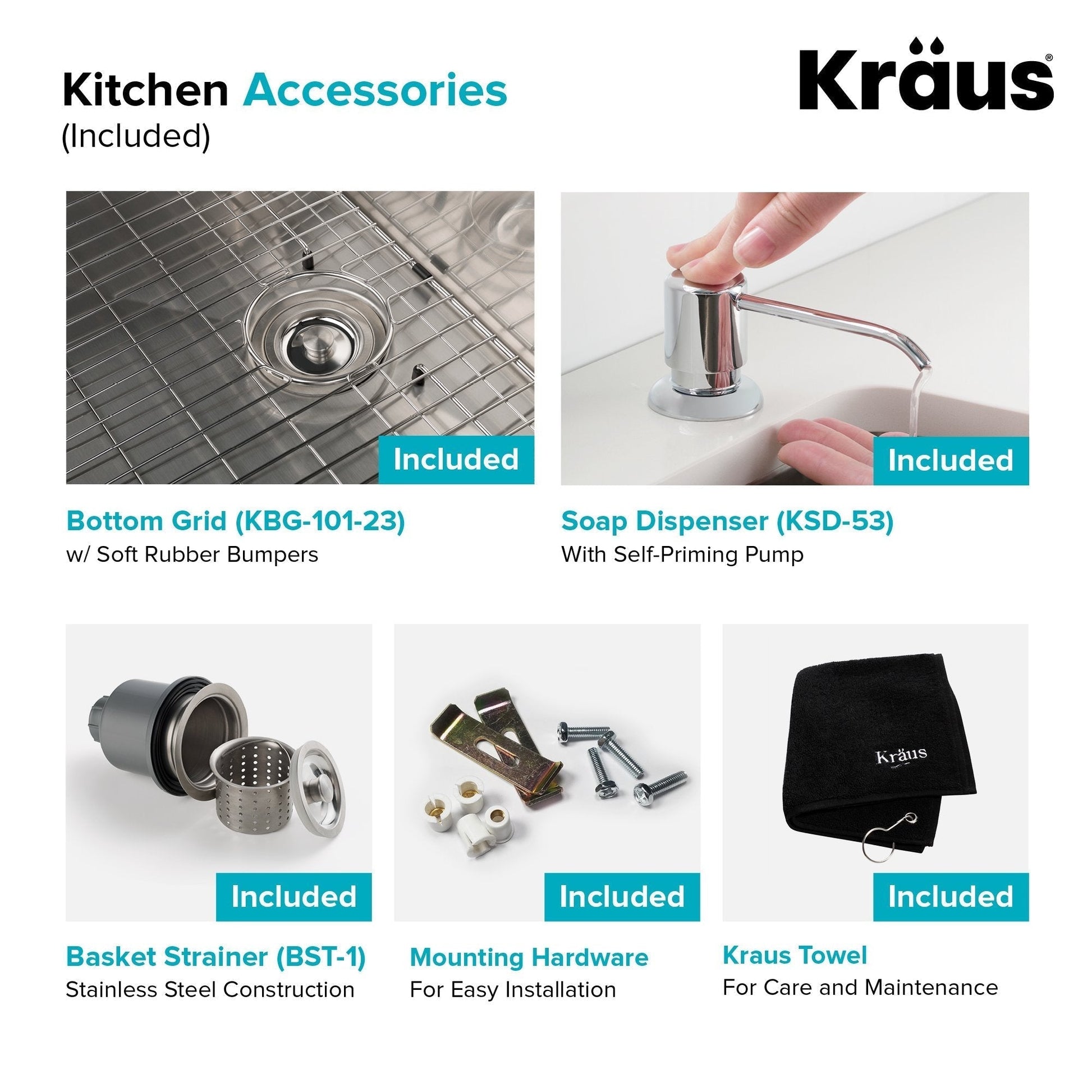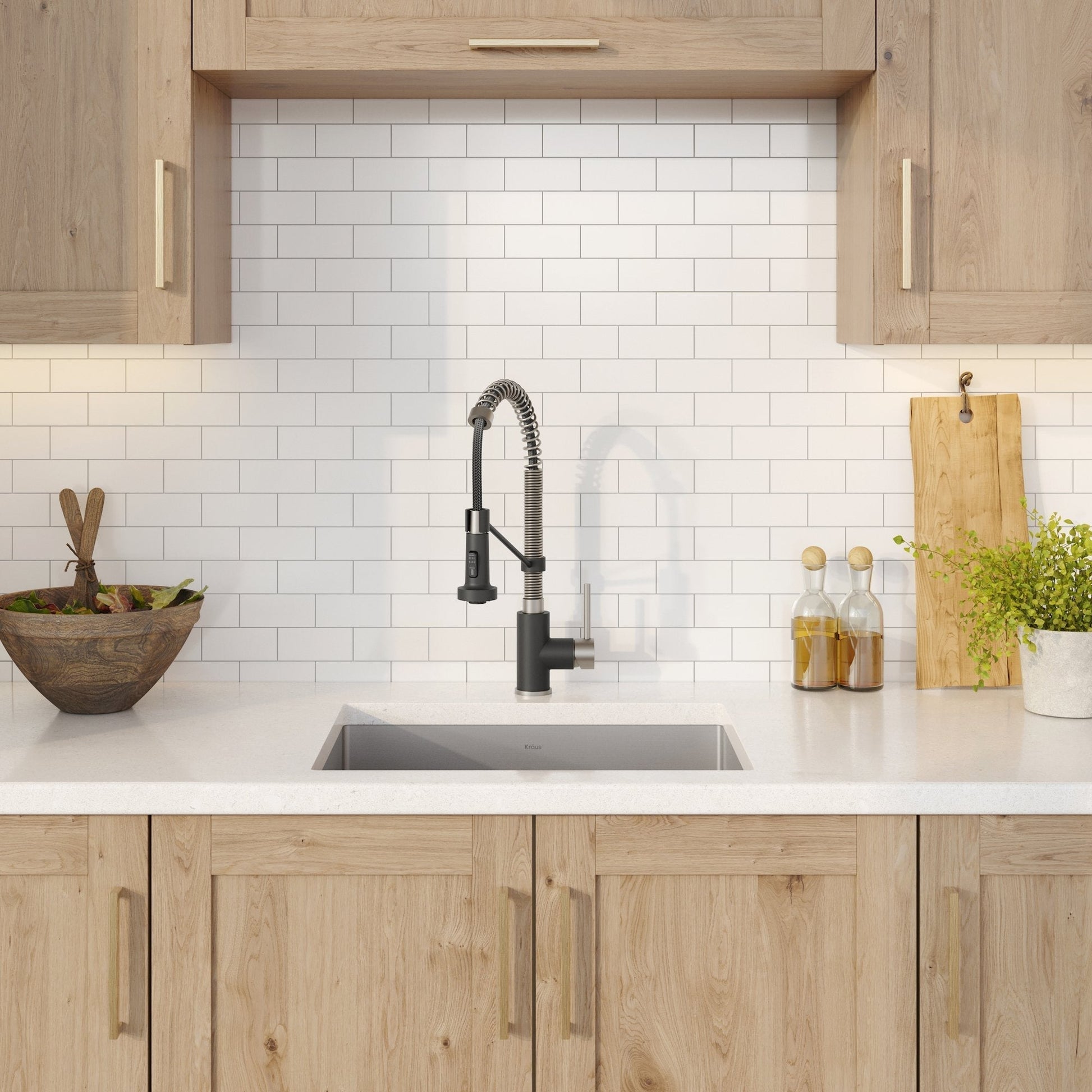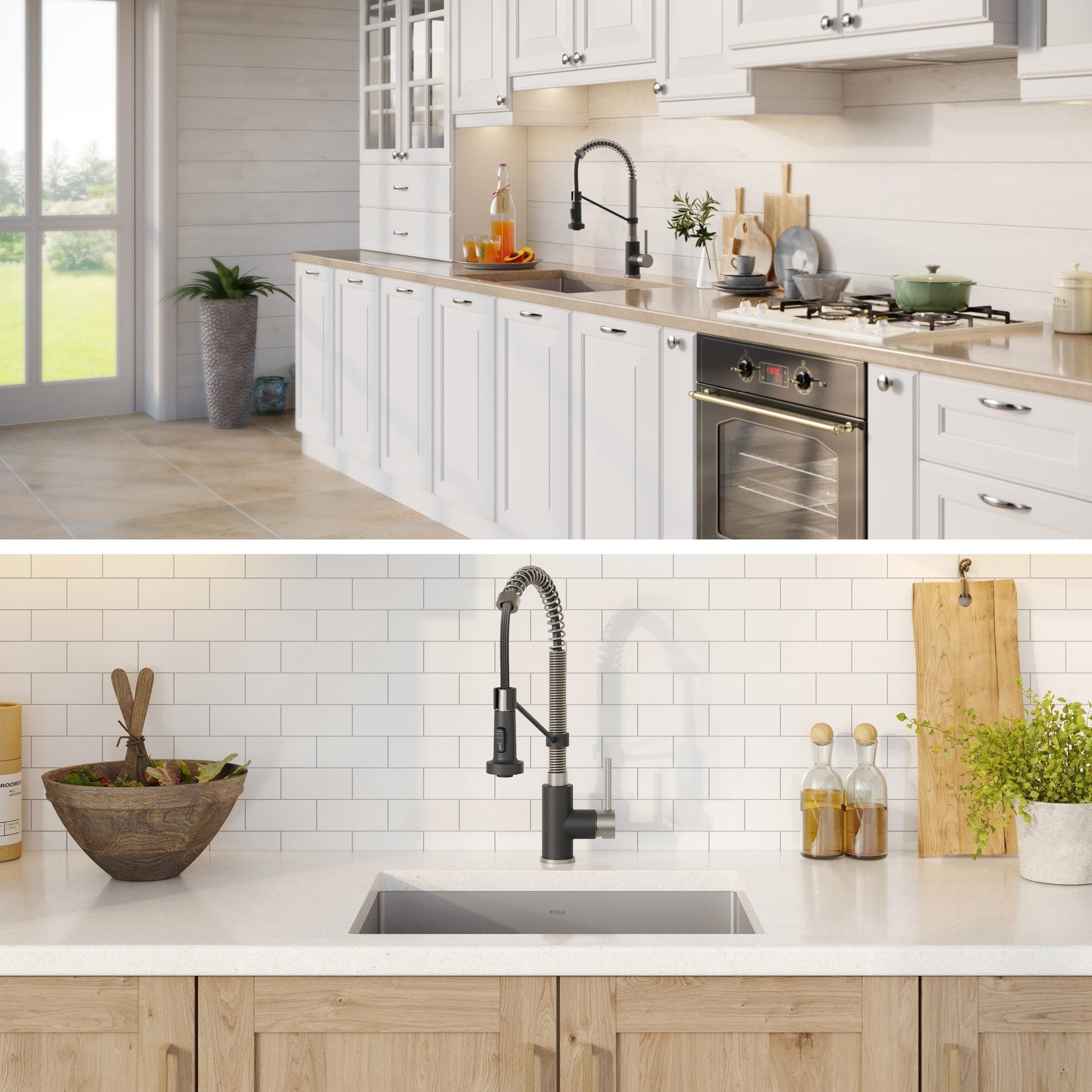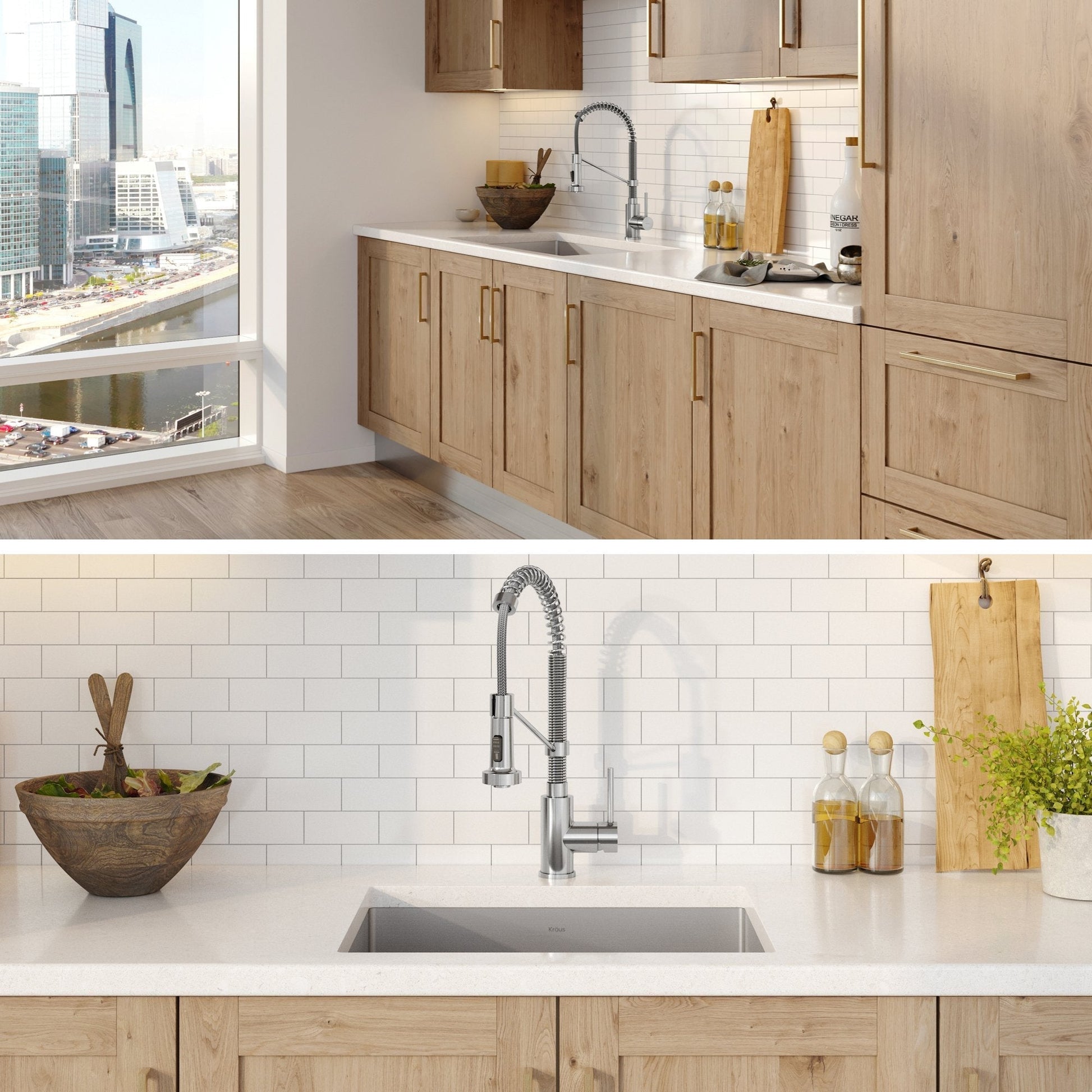 This KRAUS Kitchen Combo makes it easy to build the high-end kitchen of your dreams. Upgrade to modern kitchen style with a best-selling Standart PRO Series sink, paired with a sleek Bolden commercial pull-down faucet for maximum visual impact.