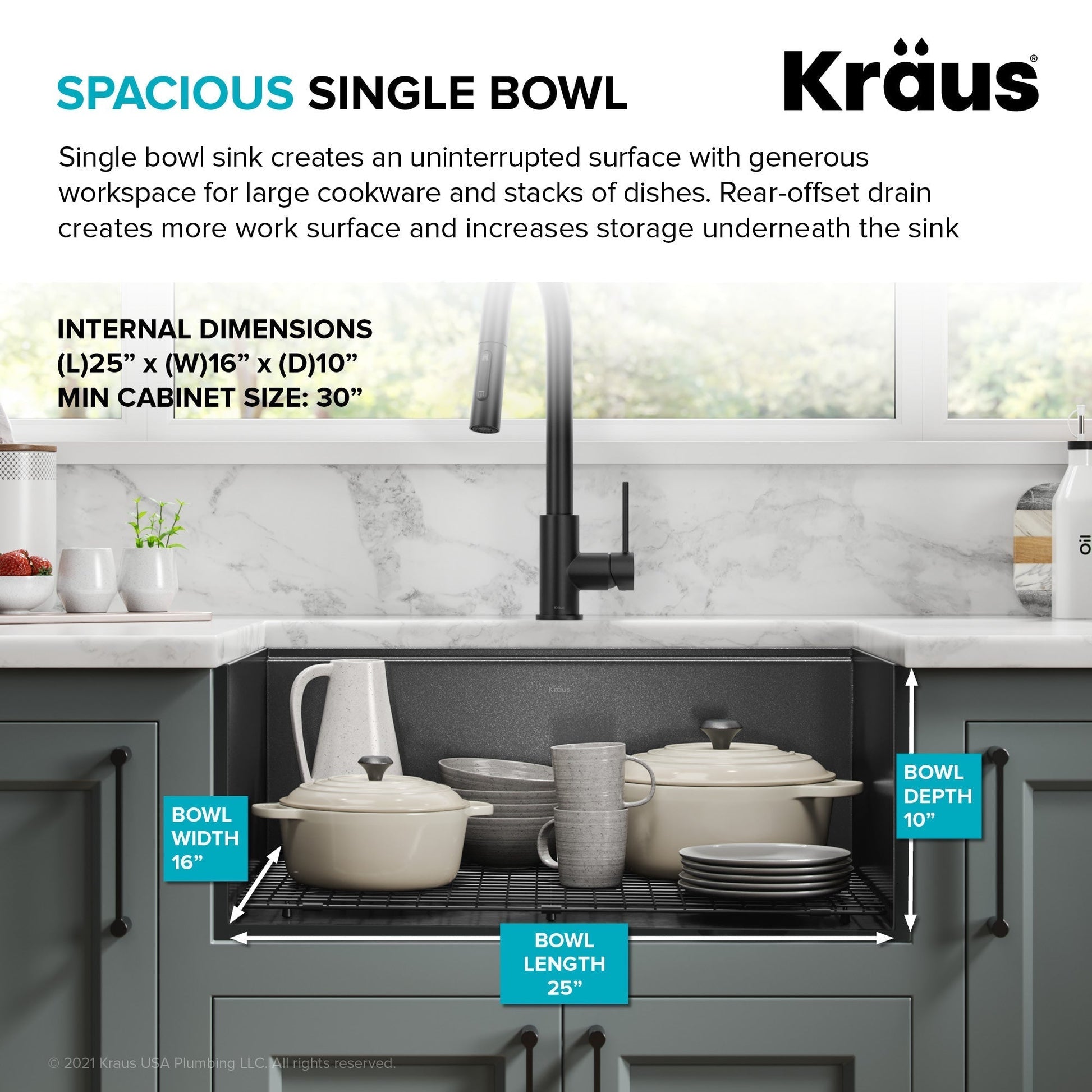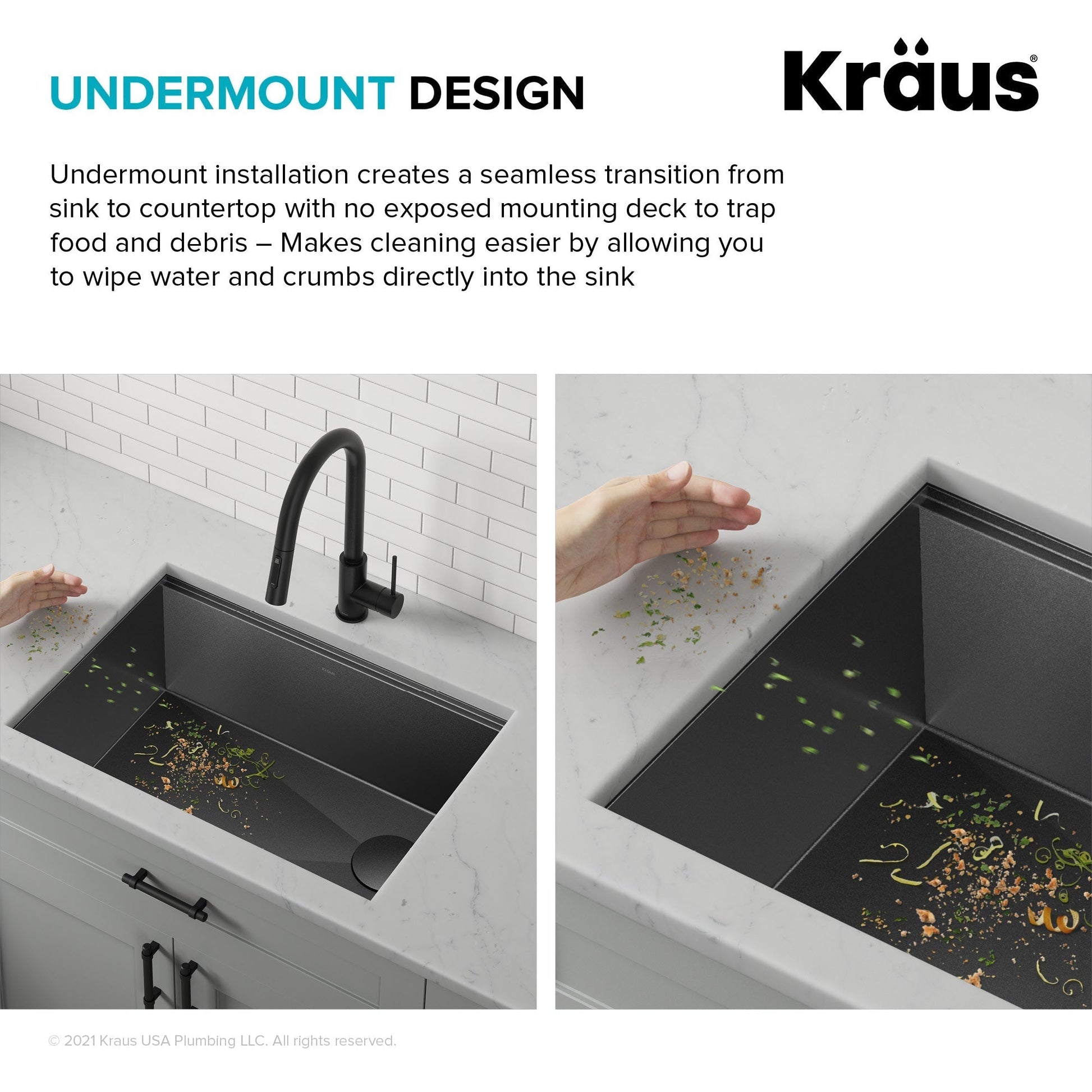 HIGH-PERFORMANCE 16 GAUGE STEEL: Constructed from proprietary KRAUS TRU16 - the thickest 16-gauge stainless steel for superior durability and resistance to dents and damage