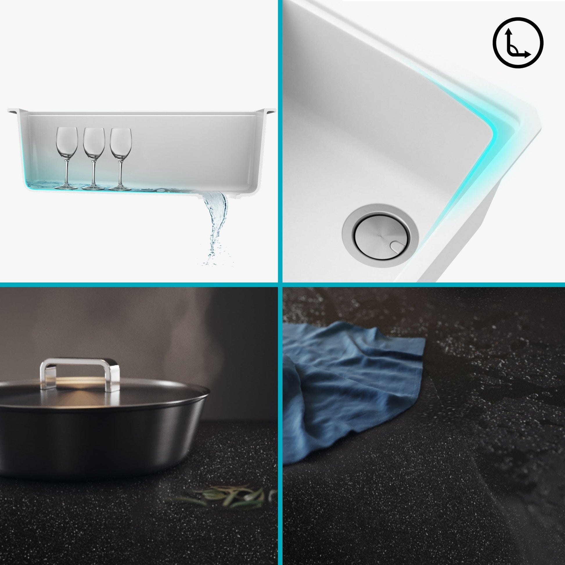 STAIN RESISTANT: Non-porous material resists scratches and stains, prevents food and liquid from sticking to sink surface