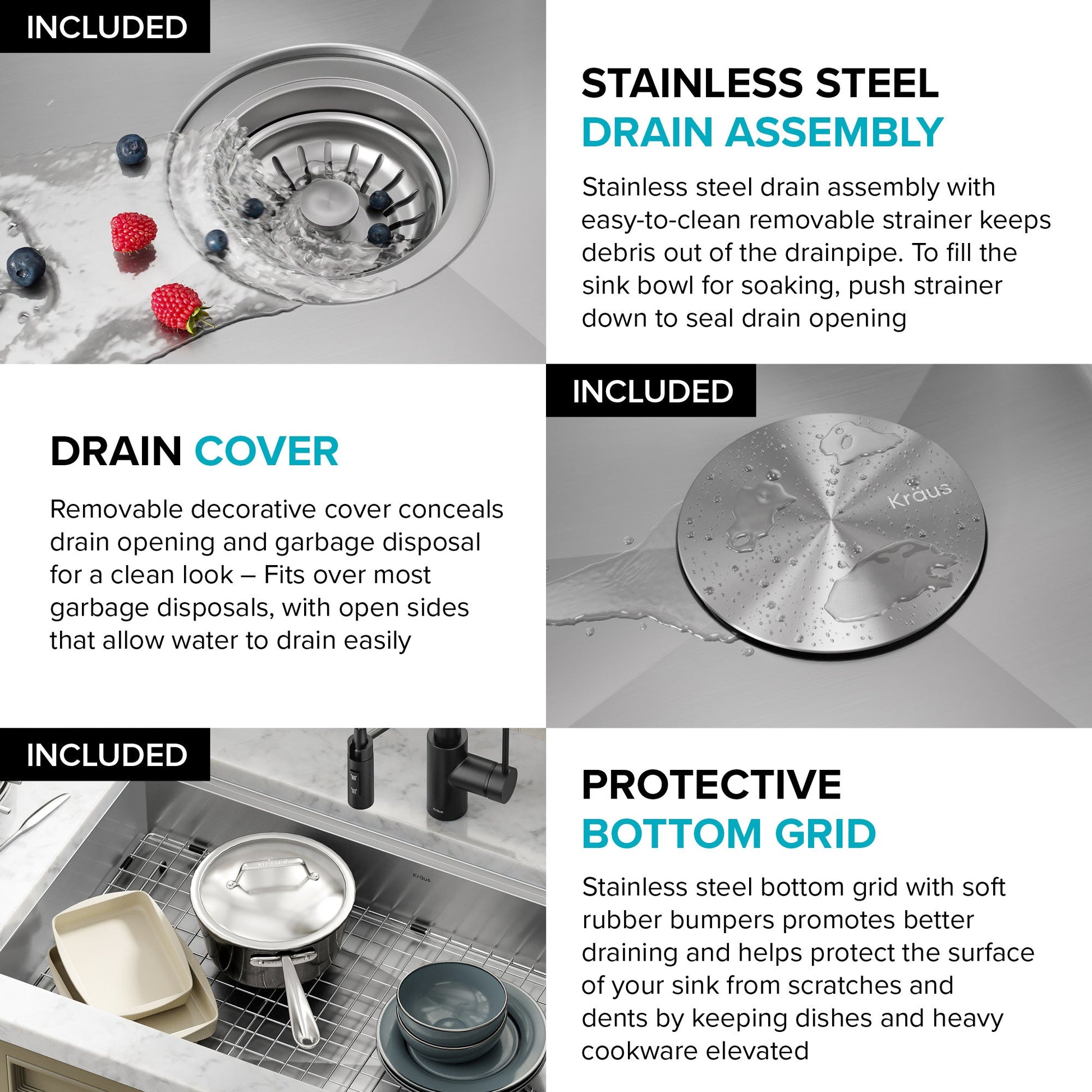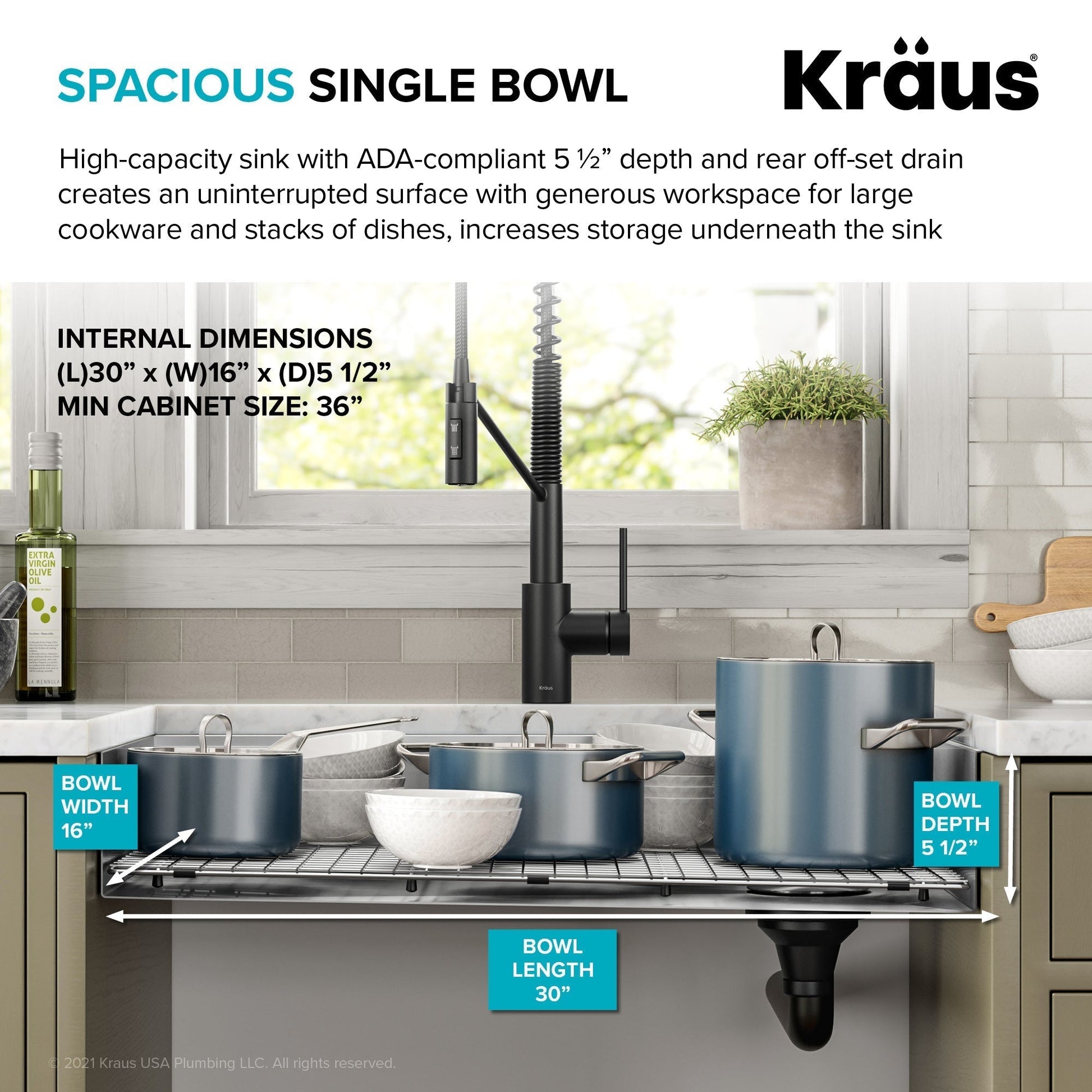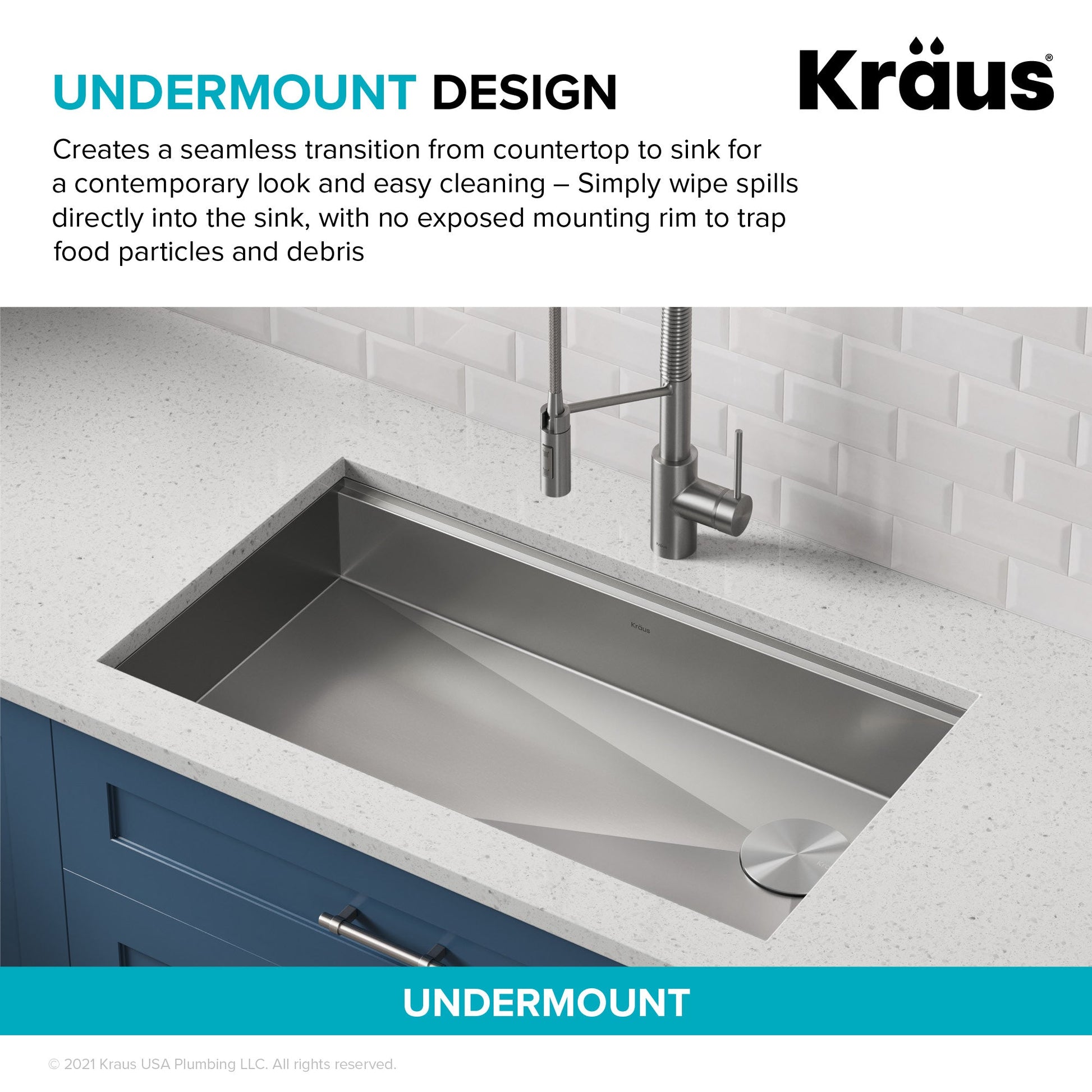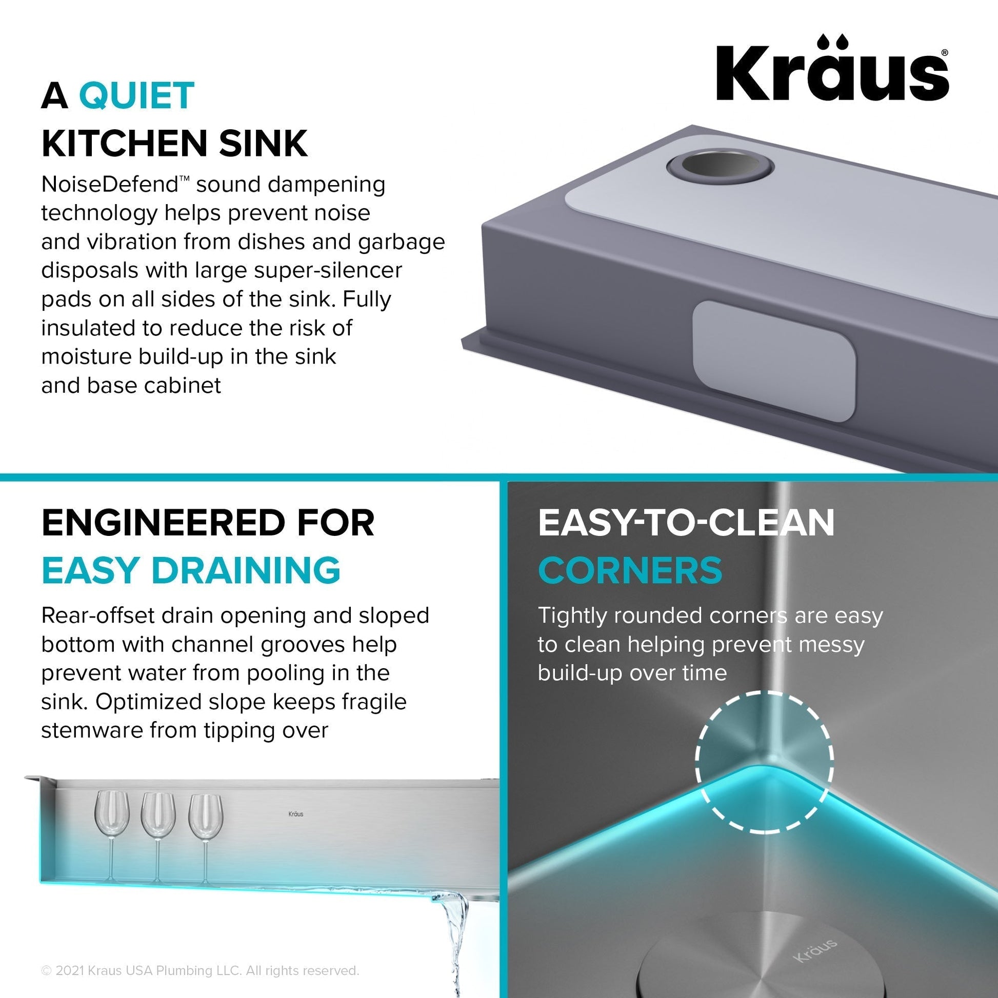 HEAVY-DUTY 16 GAUGE SINK: Constructed from ultra-durable KRAUS TRU16 - the thickest 16-gauge stainless steel for superior resistance to dents and damage