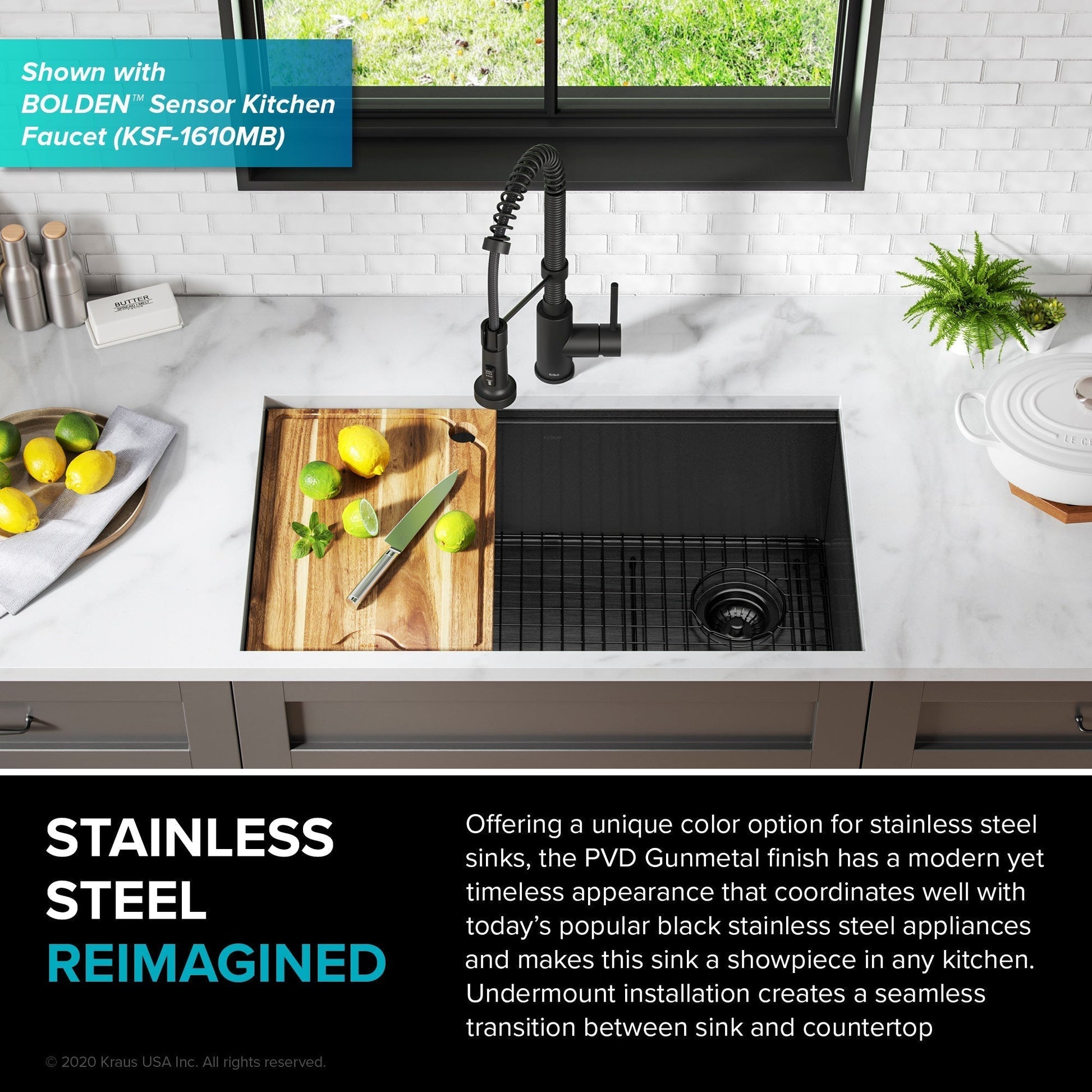PVD GUNMETAL FINISH: Offering a modern yet timeless appearance, this unique color option matches black stainless steel appliances and makes this sink a showpiece in any kitchen