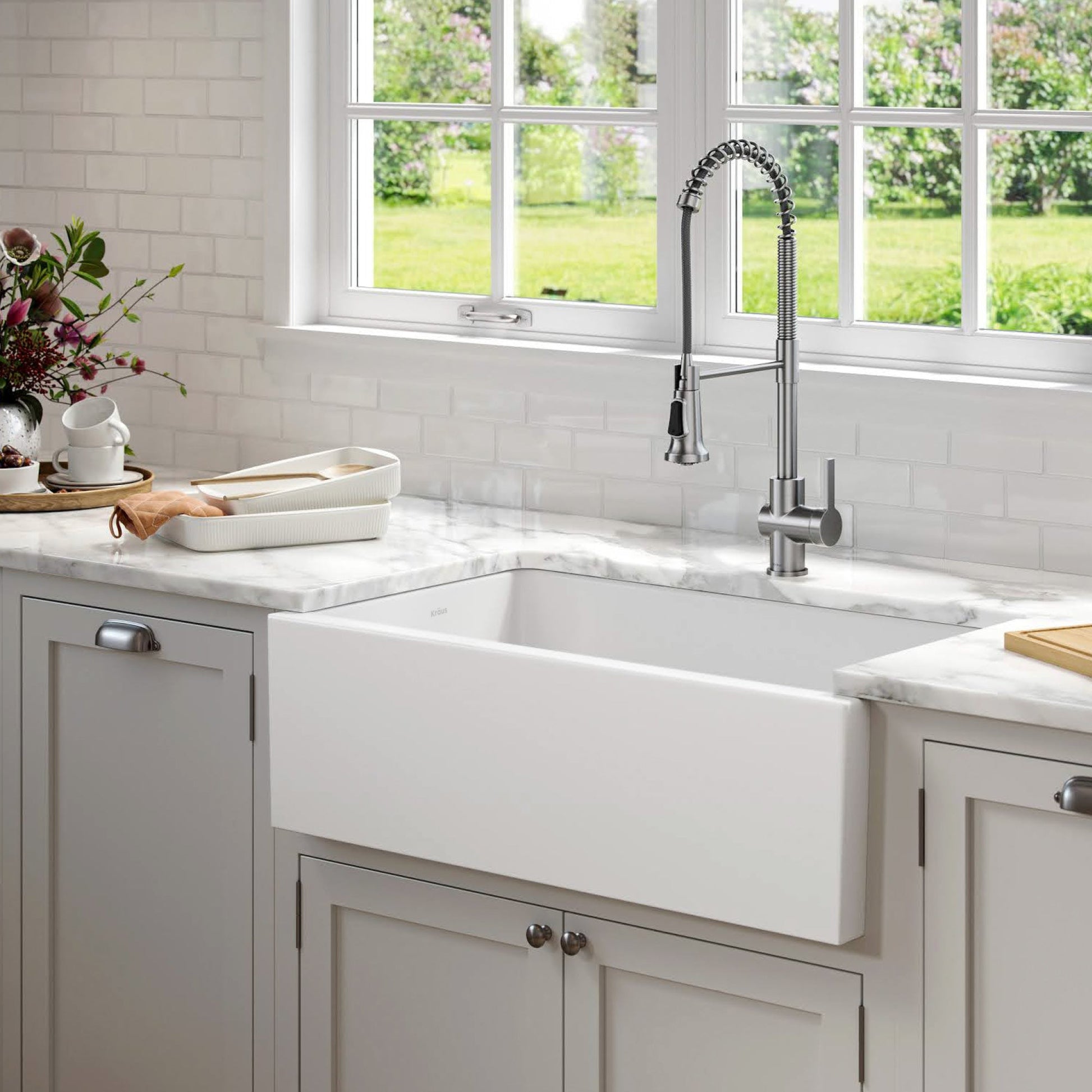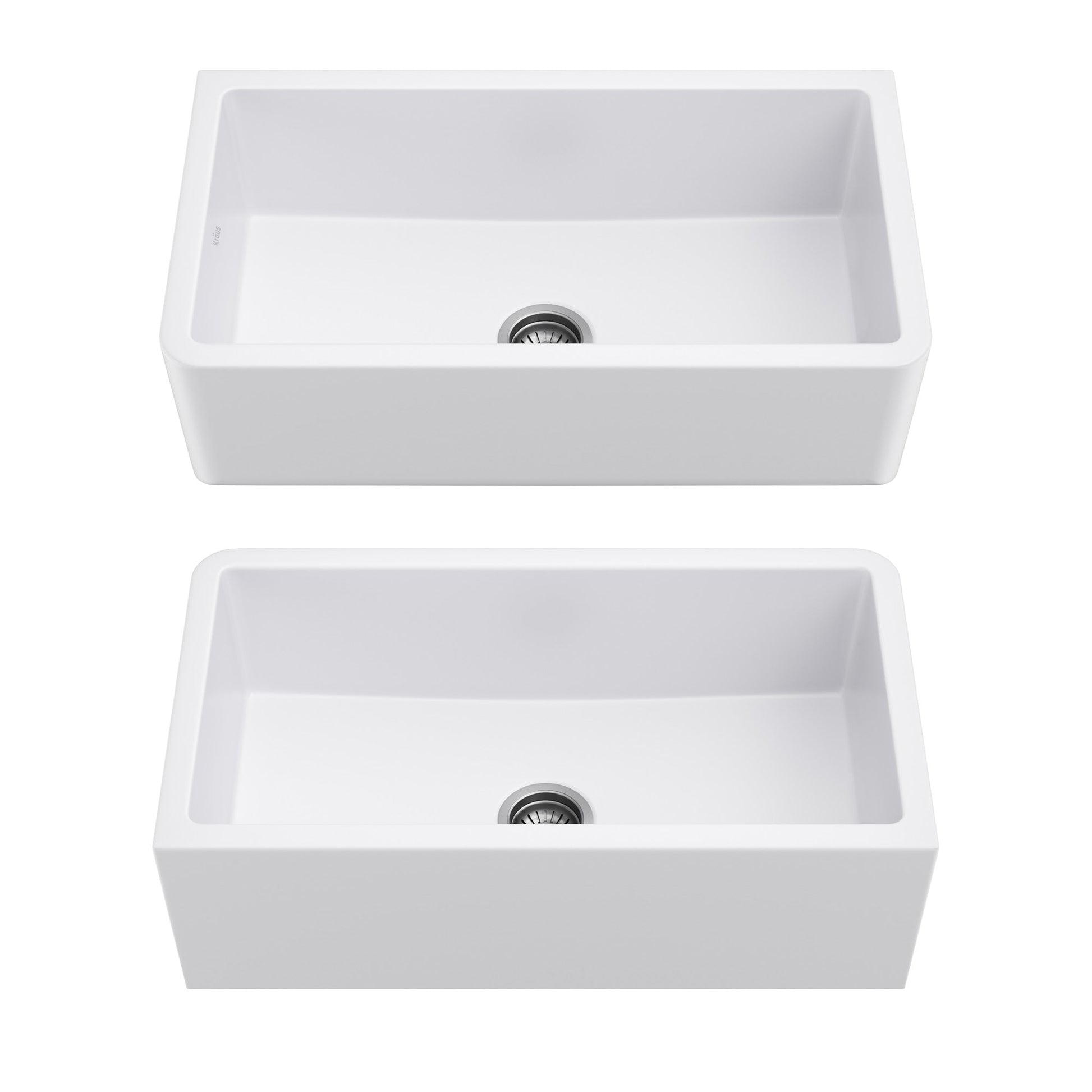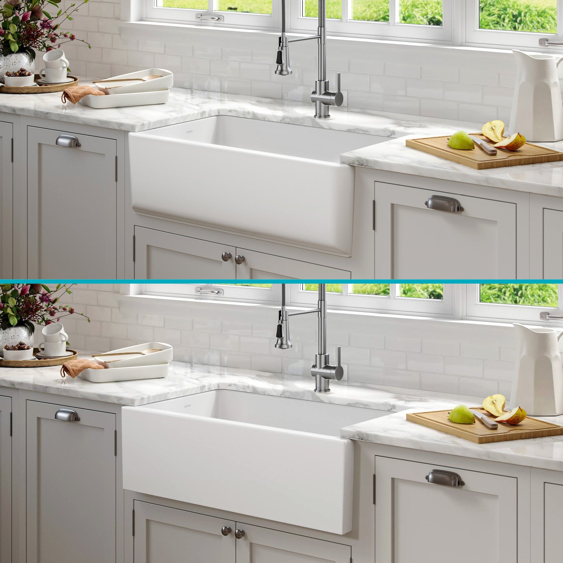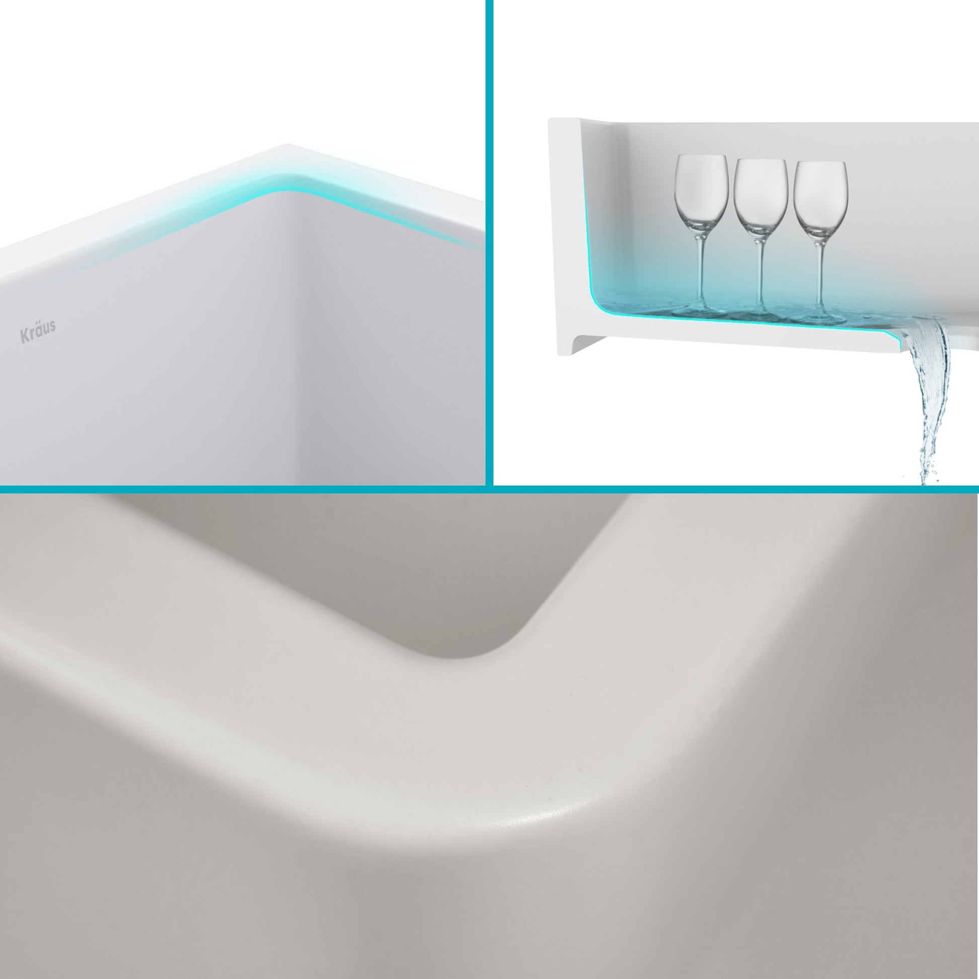 FINE FIRECLAY: Proprietary fine fireclay blend boasts a dense composition that makes this sink highly resistant to impact and thermal shock - Ultra-fine material allows for perfectly even glaze application, preventing cracking and crazing that can occur with sinks made from coarse grain material