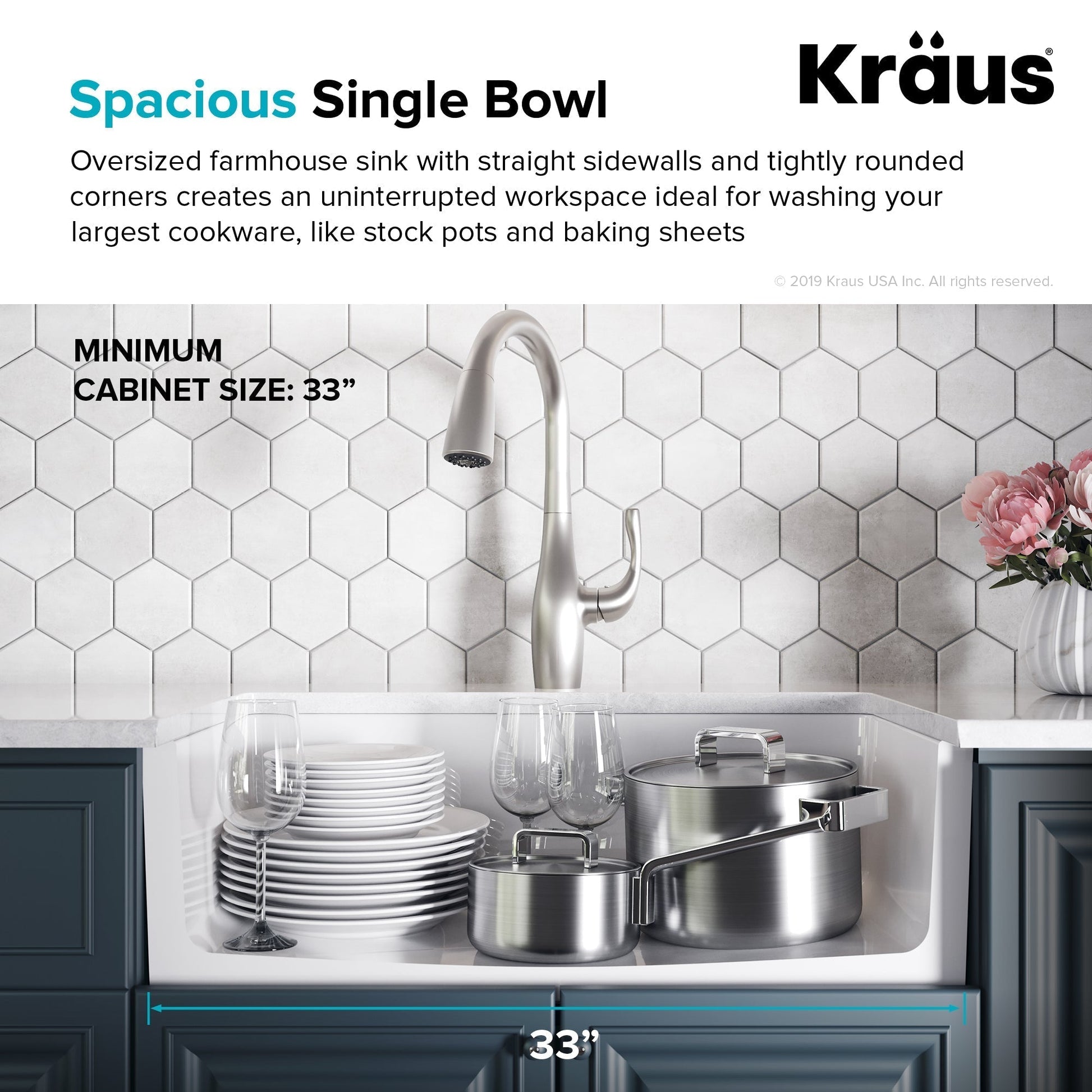 High-Grade Fireclay: KRAUS proprietary fireclay blend boasts an ultra-fine material structure that prevents cracking and crazing