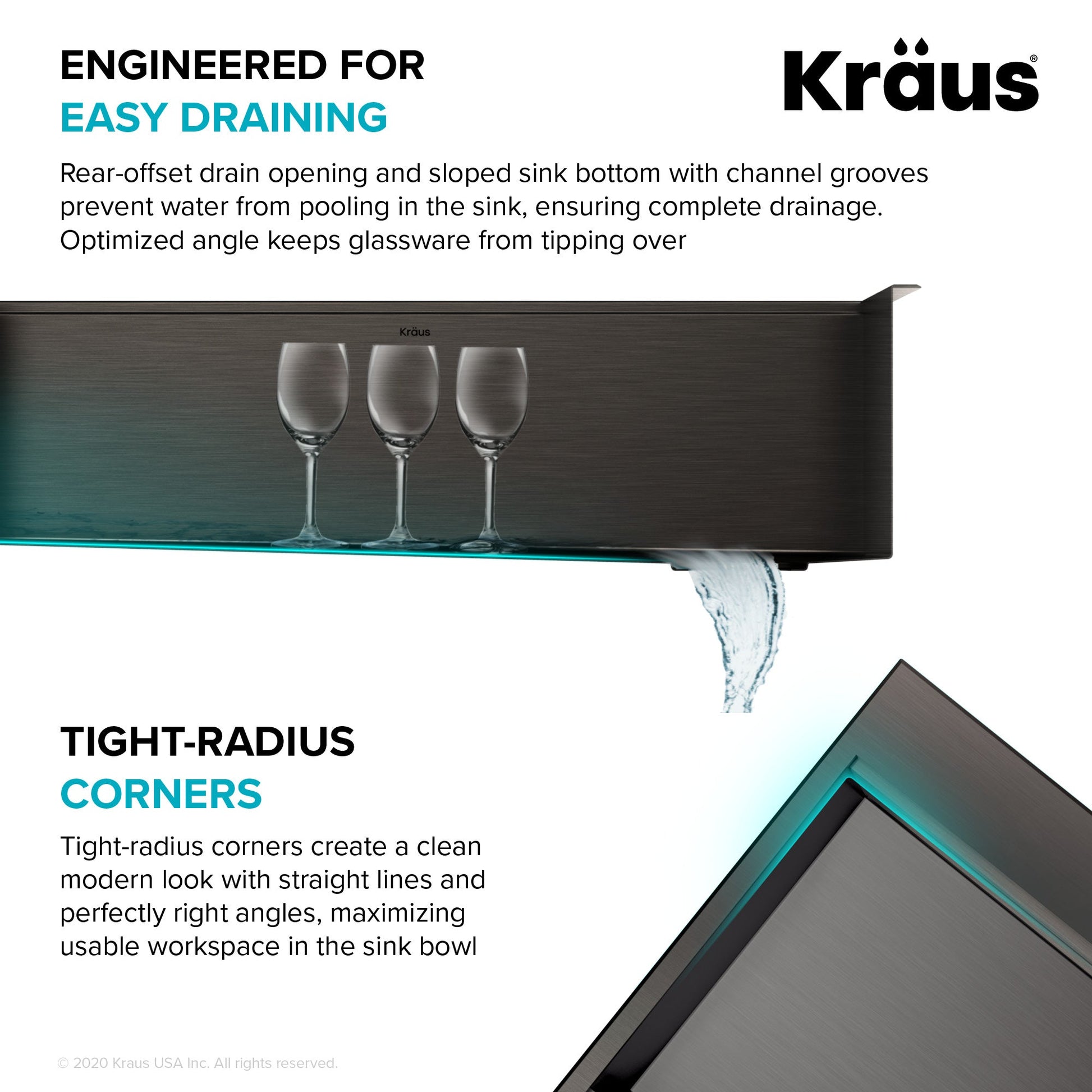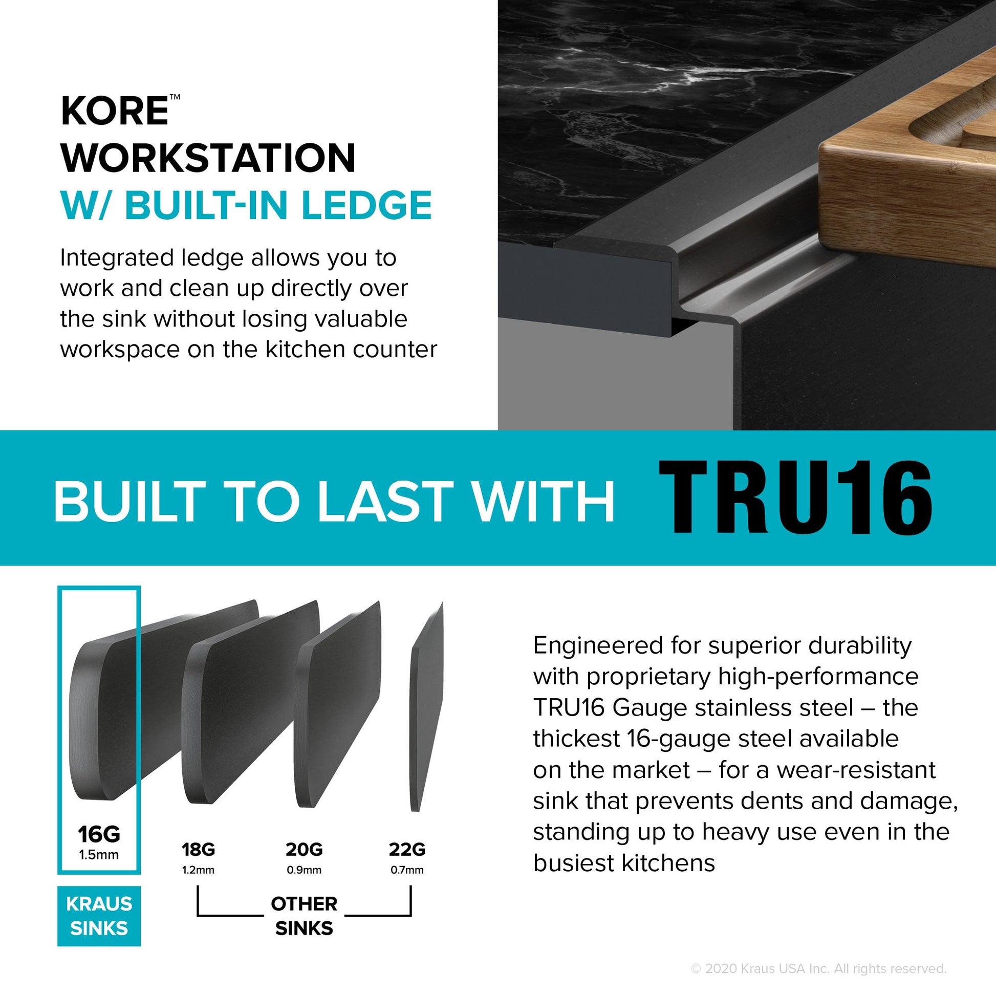 HIGH-PERFORMANCE 16 GAUGE STEEL: Constructed from proprietary KRAUS TRU16 - the thickest 16-gauge stainless steel for superior durability and resistance to dents and damage