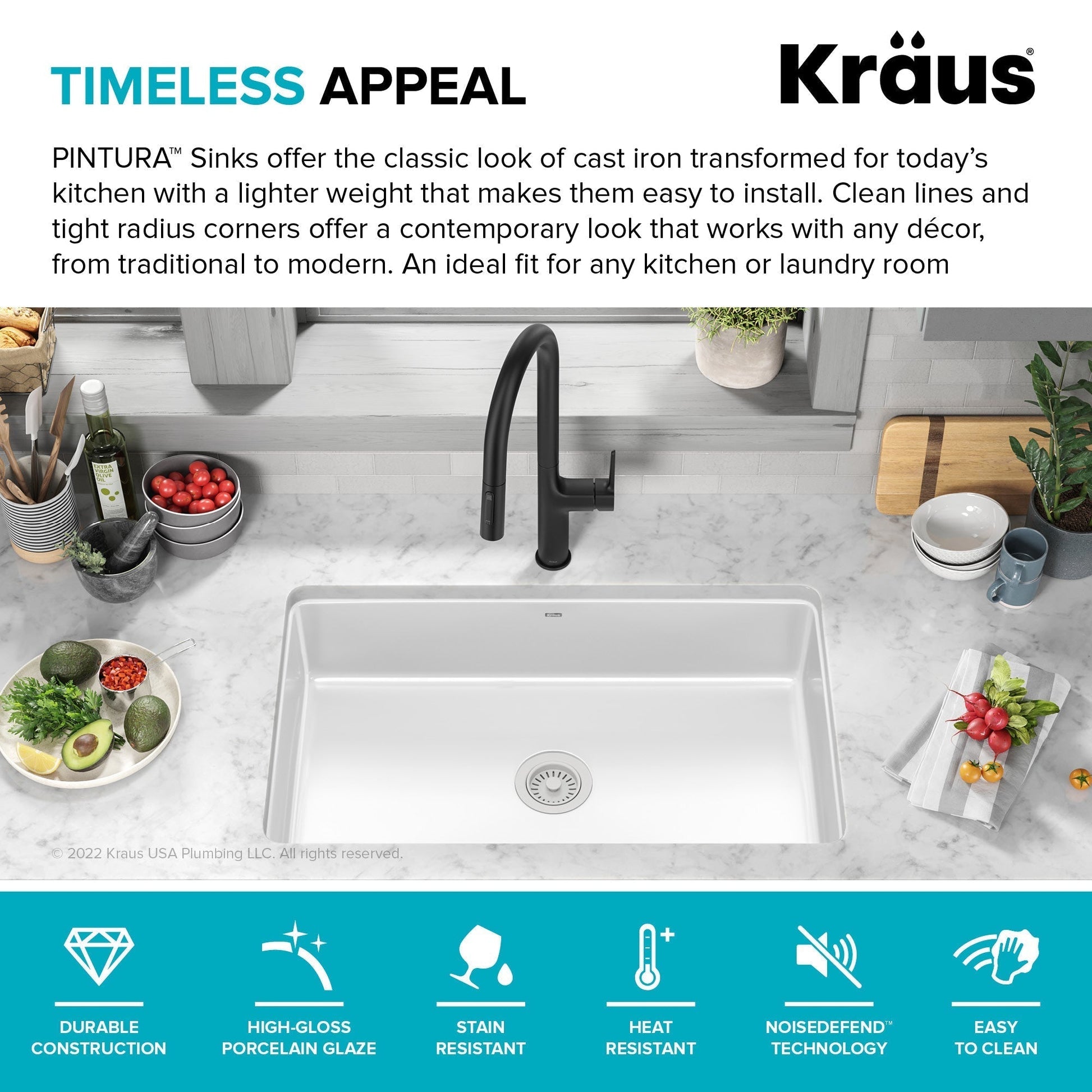 TIMELESS APPEAL of classic cast iron sinks transformed for today's kitchen with an extremely durable steel core that is approximately 65% lighter than cast iron, eliminating the need for specialized installation