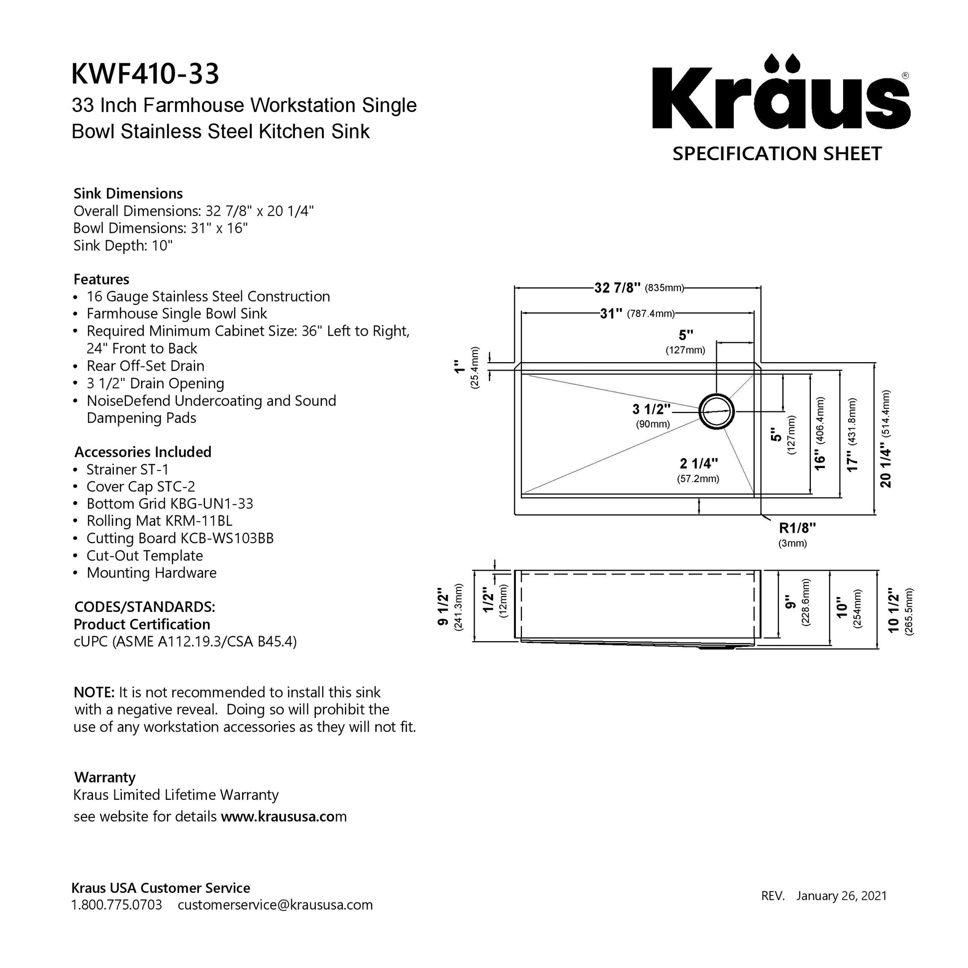 A: 33" overall length, designed for farmhouse sink base cabinets.