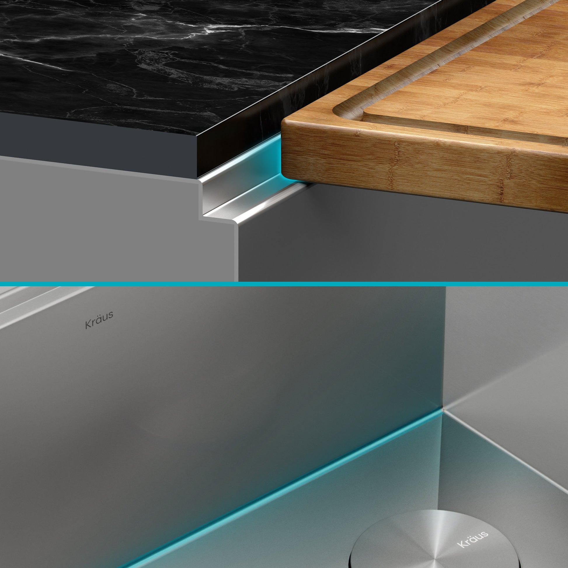 HEAVY-DUTY 16 GAUGE STEEL: Constructed from ultra-durable KRAUS TRU16 the thickest 16-gauge stainless steel for superior resistance to dents and damage