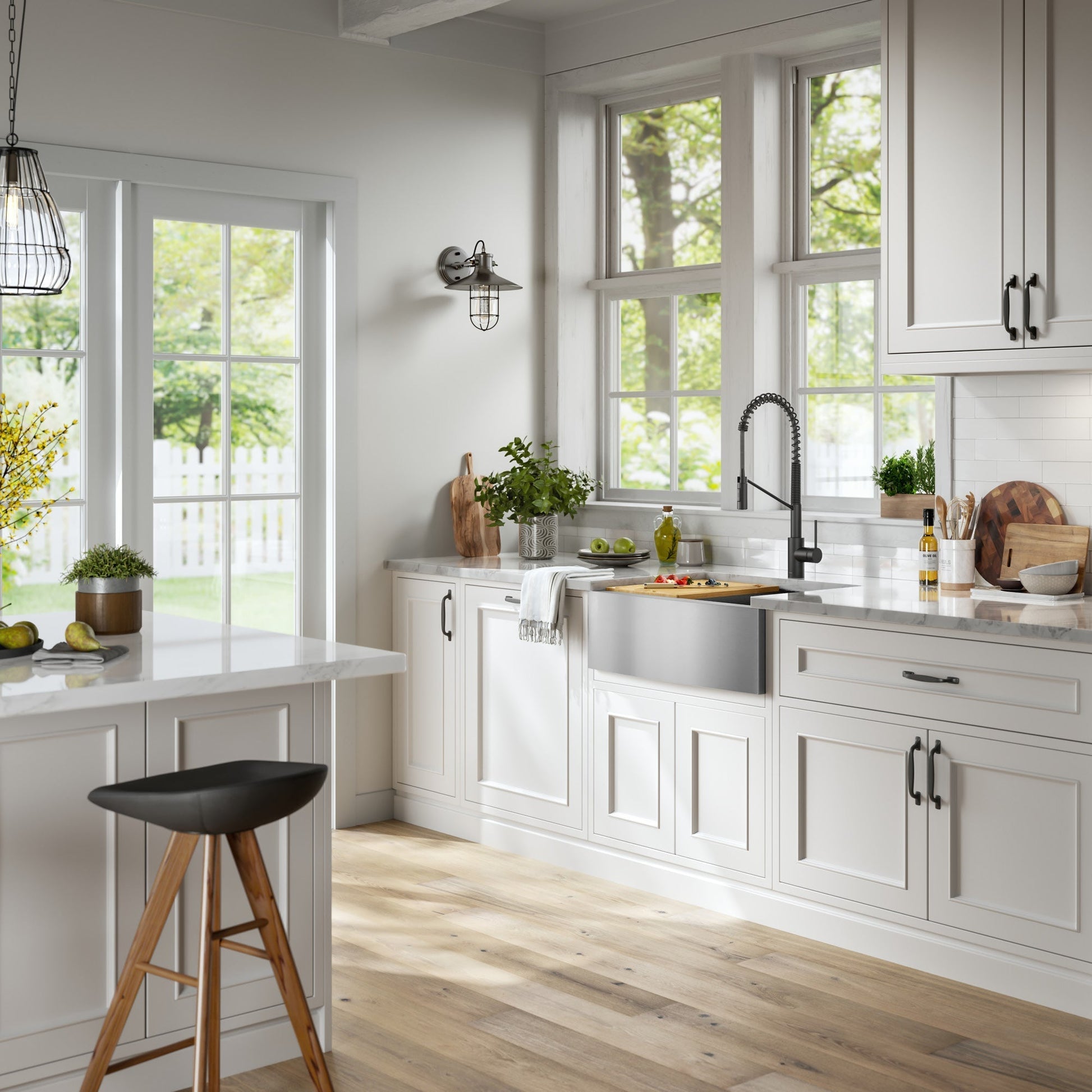 FARMHOUSE DESIGN: Classically-inspired rounded apron front creates a focal point with a distinctive modern look that fits perfectly into any decor, from traditional to transitional and modern kitchens