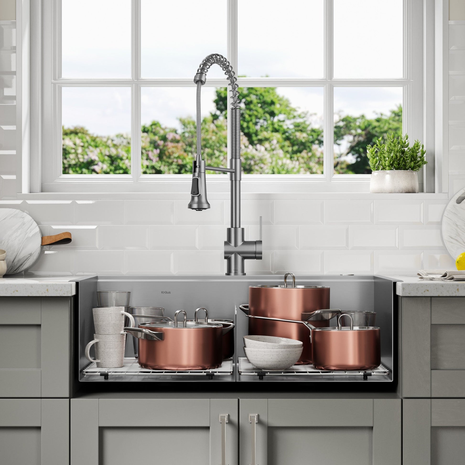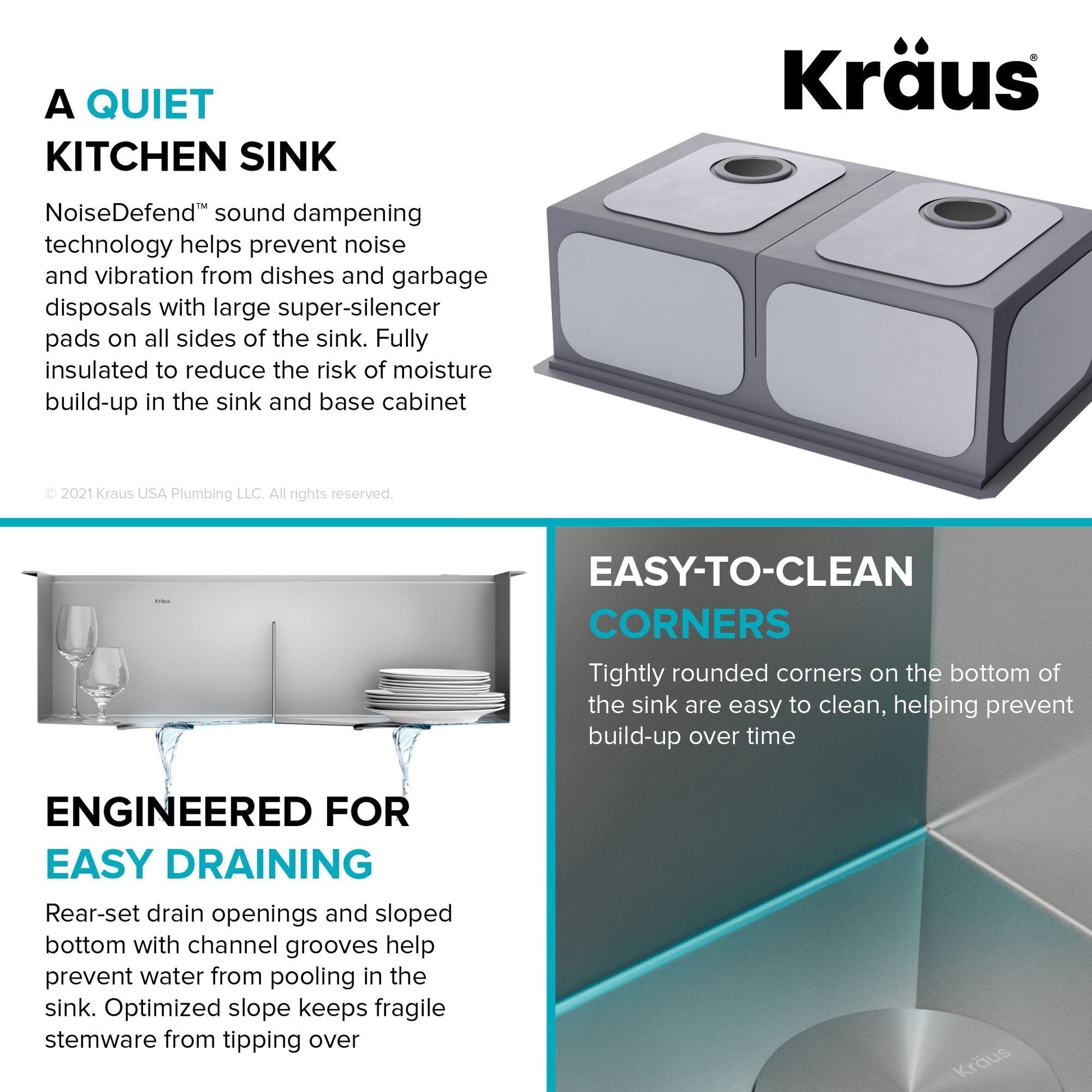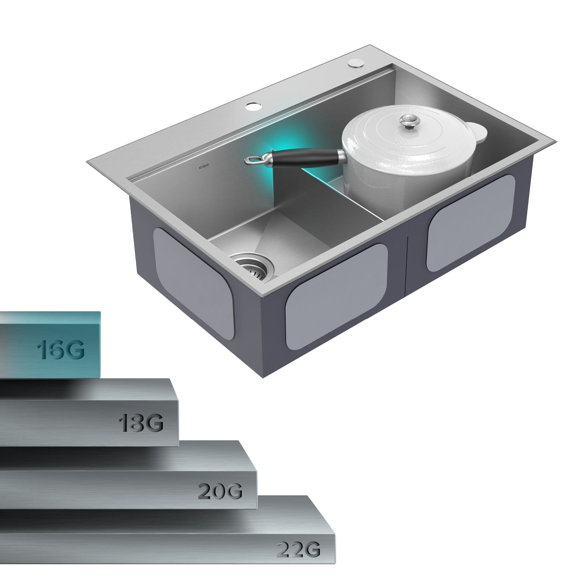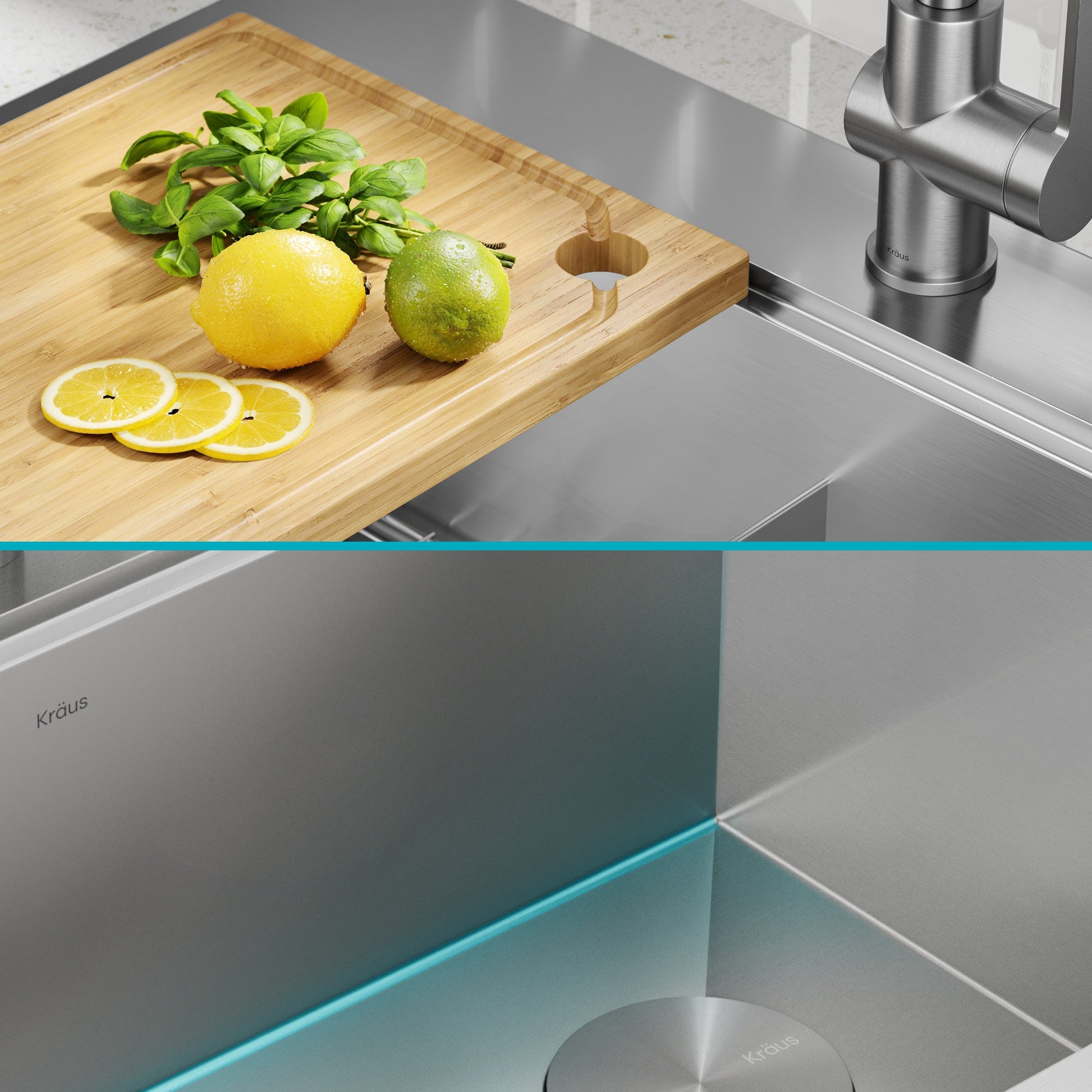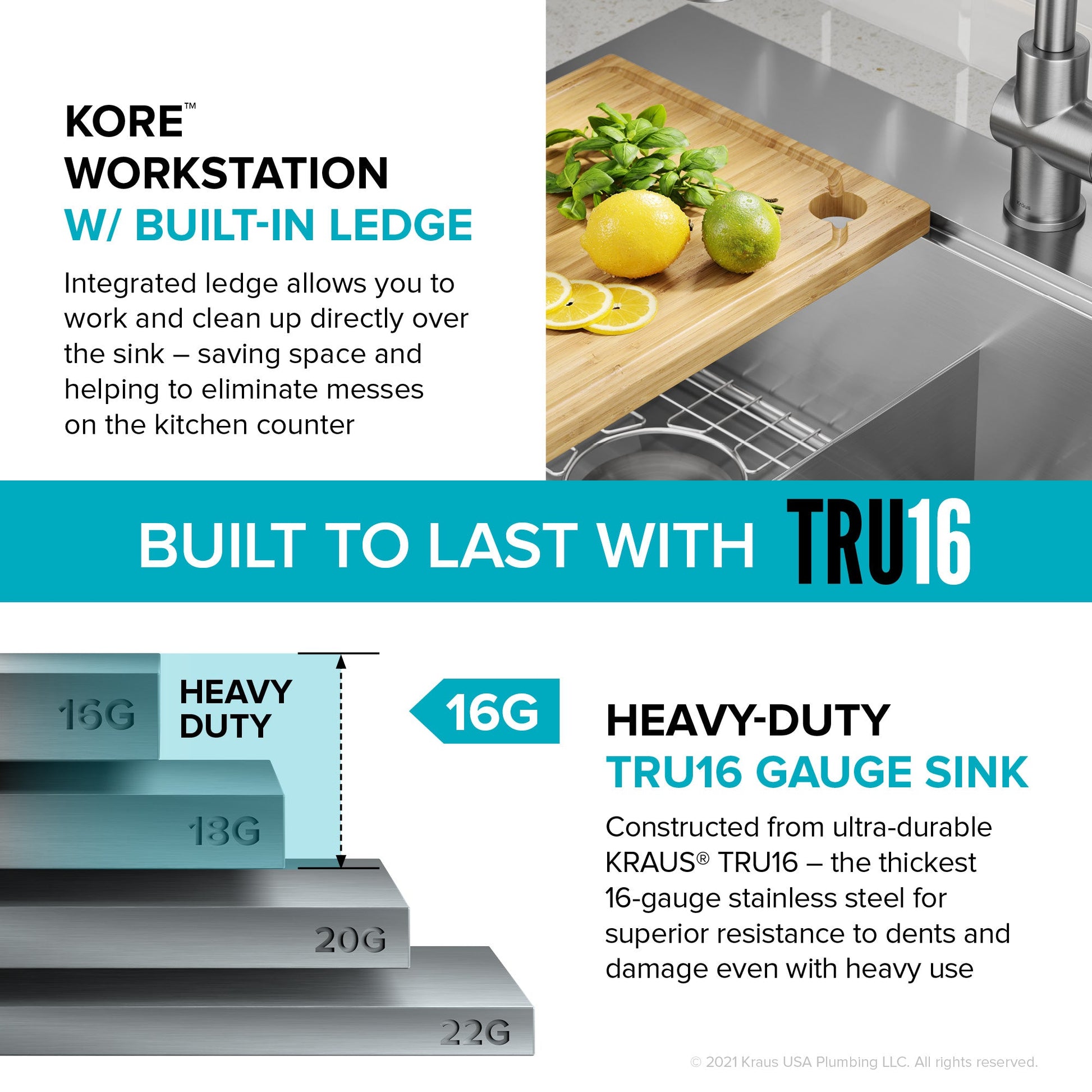 HEAVY-DUTY 16 GAUGE STEEL: Constructed from ultra-durable KRAUS TRU16 the thickest 16-gauge stainless steel for superior resistance to dents and damage