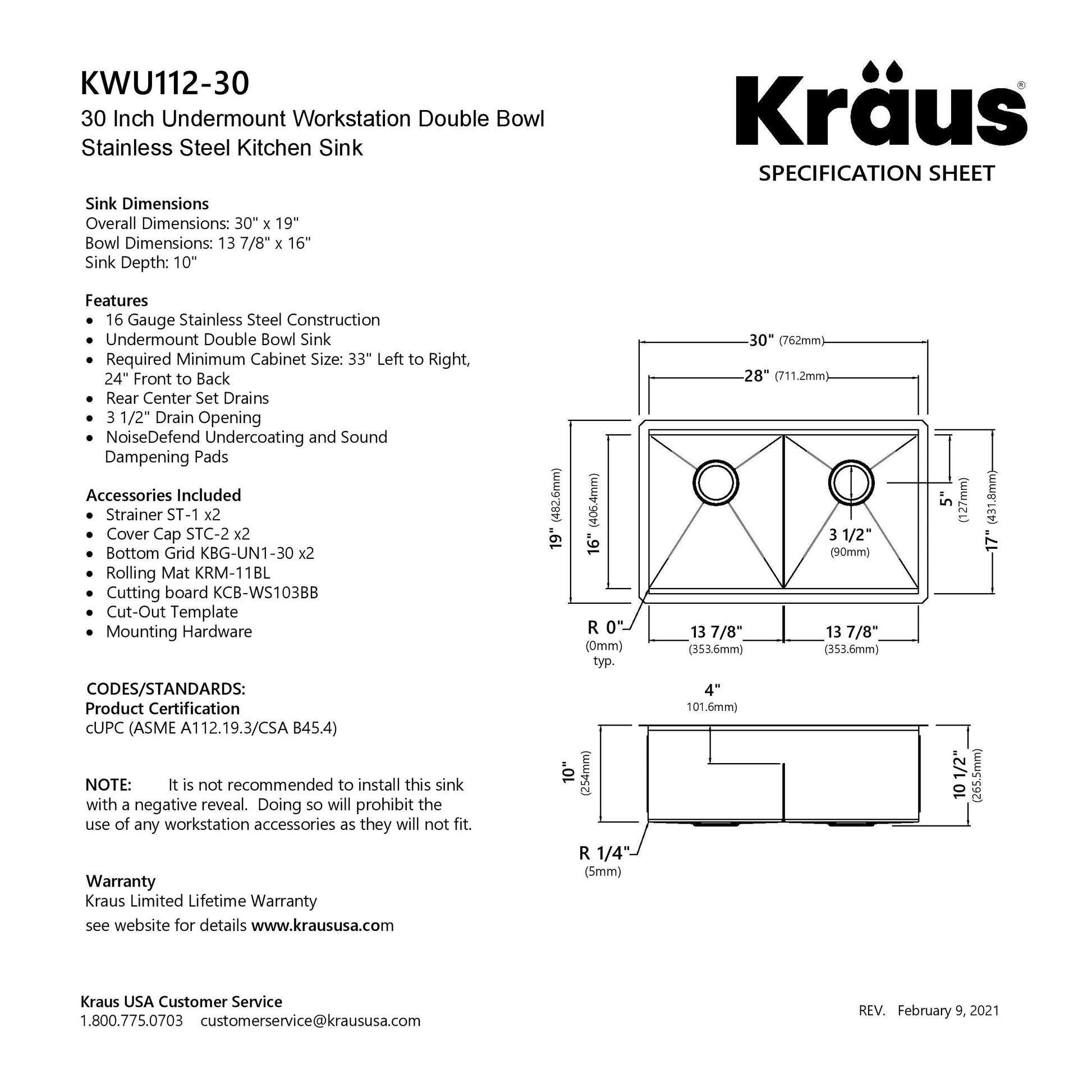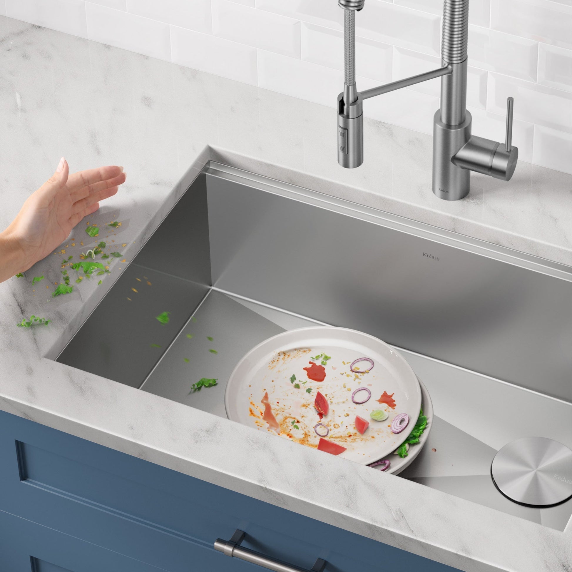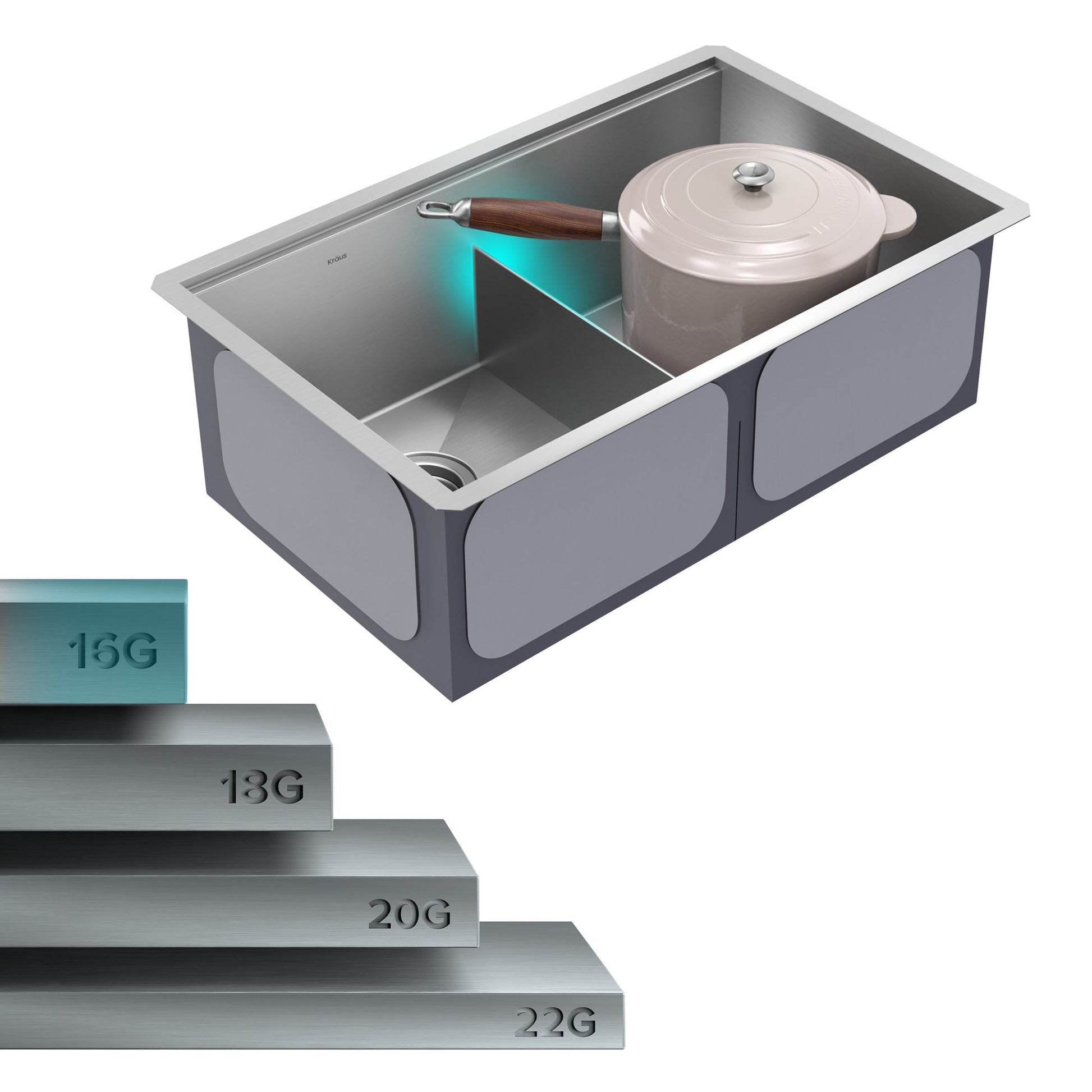 HEAVY-DUTY 16 GAUGE STEEL: Constructed from ultra-durable KRAUS TRU16 the thickest 16-gauge stainless steel for superior resistance to dents and damage