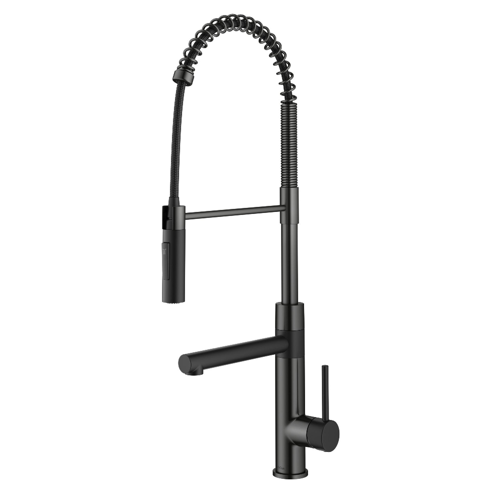 Upgrade your kitchen with the professional style of the KRAUS KPF-1604 Artec Pro™ kitchen faucet in Matte Black and Spot Free Black Stainless, featuring a dual-tap design with open-coil spout and rotating pot filler. Engineered with Reach™ pull-down technology for an extended range of motion, this faucet allows you to flex, pivot, and reach all around the sink. The sprayer and pot filler rotate independently; switch from pot filler for filling pots and pitchers to pull-down sprayer for blasting away food residue. The high-arc design offers space for washing large items. Soft nozzles allow you to wipe away build-up. Lead-free all-metal construction and premium components help ensure lasting use Pre-attached water lines and mounting hardware included.