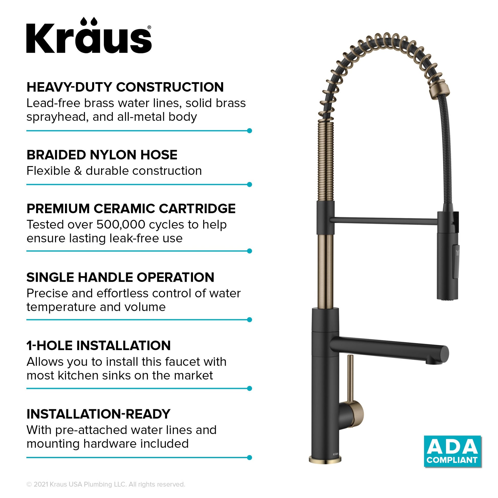 - HEAVY-DUTY CONSTRUCTION with lead-free brass water lines, solid brass sprayhead, all-metal body, and top-quality components