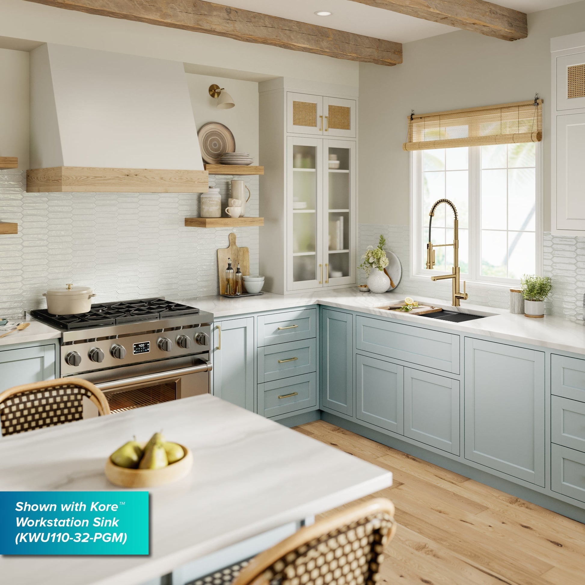 Brushed brass finish adds modern elegance and luxury to any kitchen