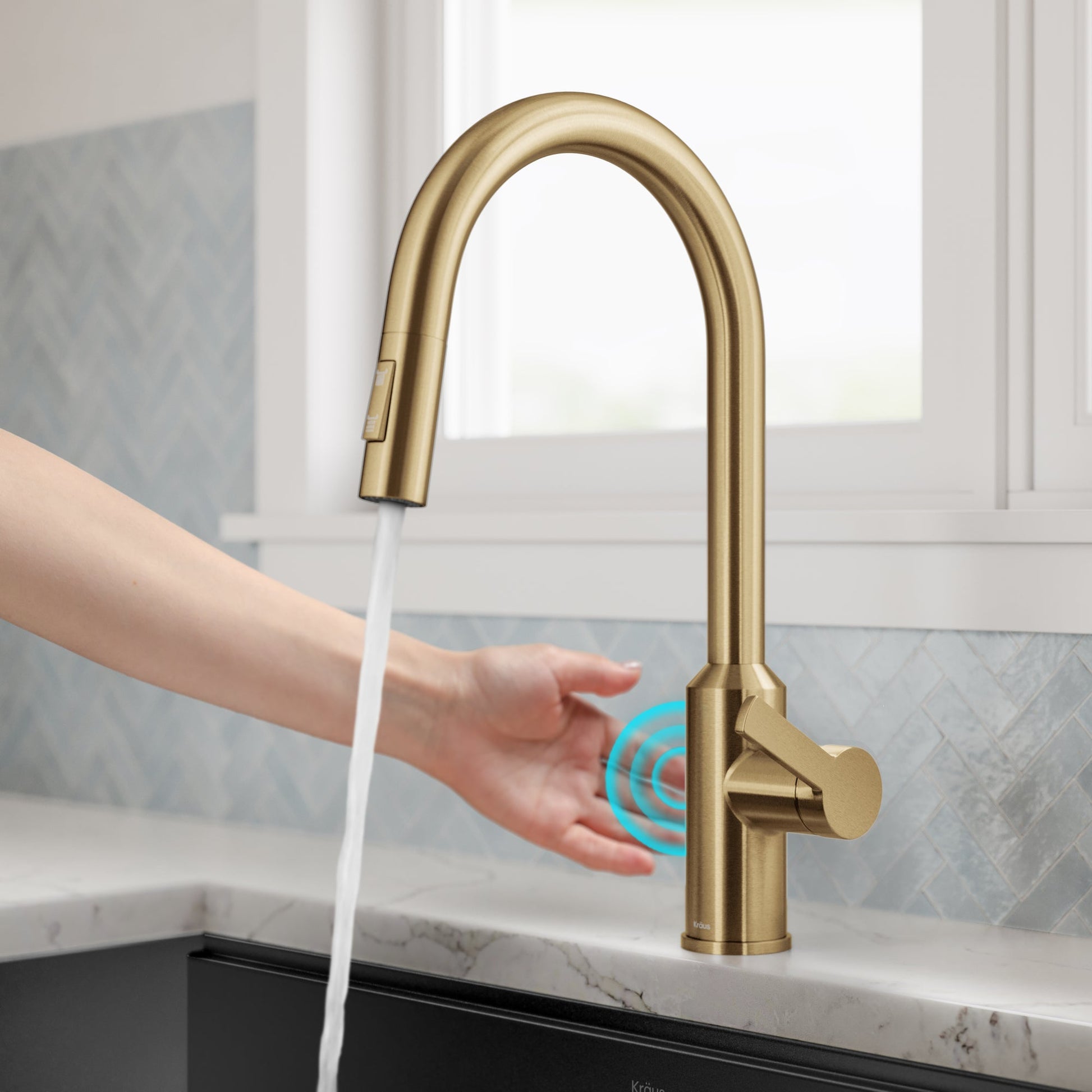 KRAUS Oletto Touchless Pull-Down Kitchen Faucet in Brushed Brass - KSF-2830BB