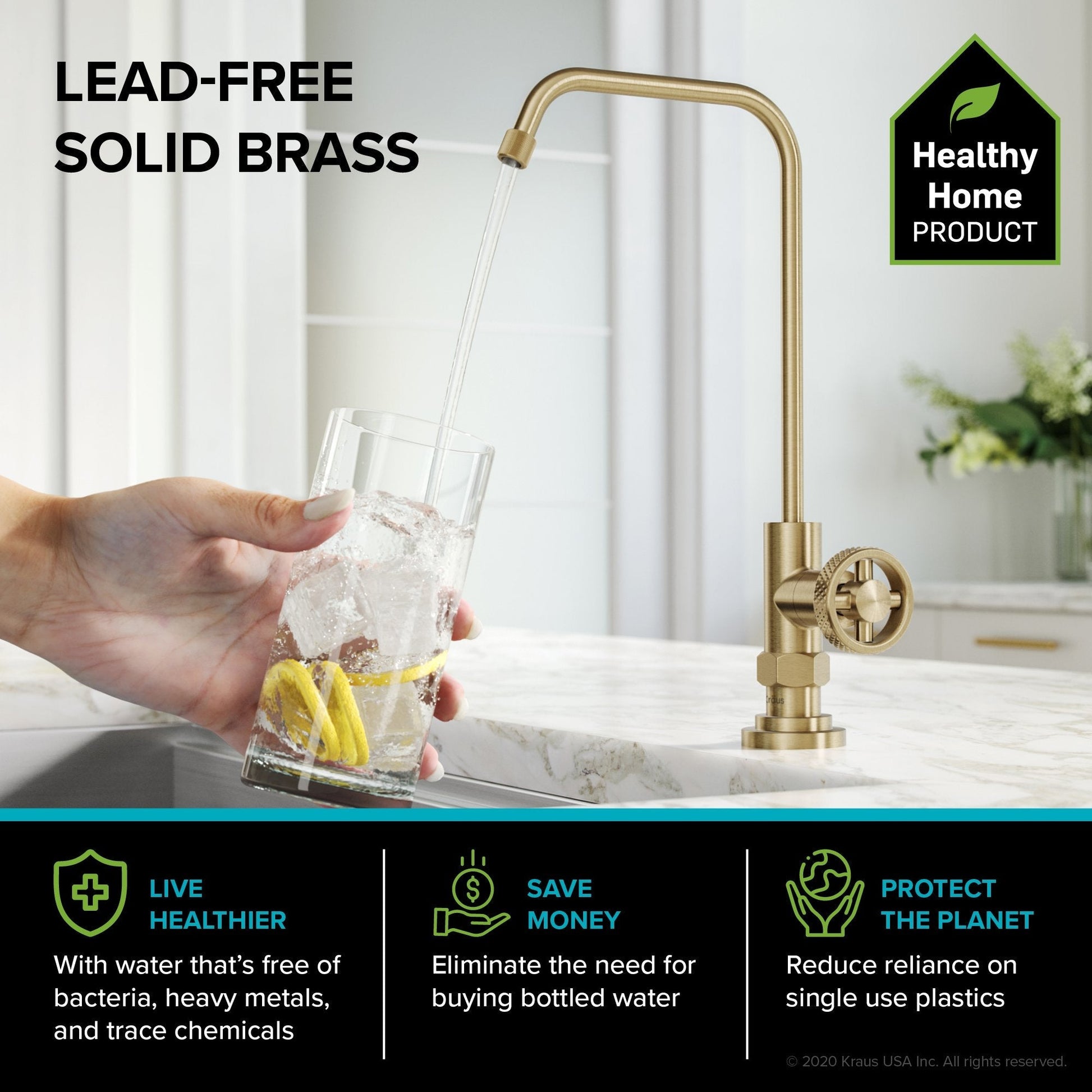 LEAD-FREE FILTER FAUCET delivers filtered water on demand and saves money on bottled water. Works with most reverse osmosis and under-counter filtration systems (not included)