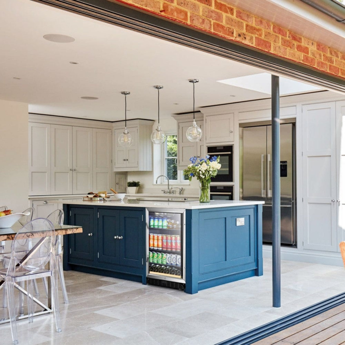 - Door Material: Tinted triple panel tempered glass door trimmed with stainless steel