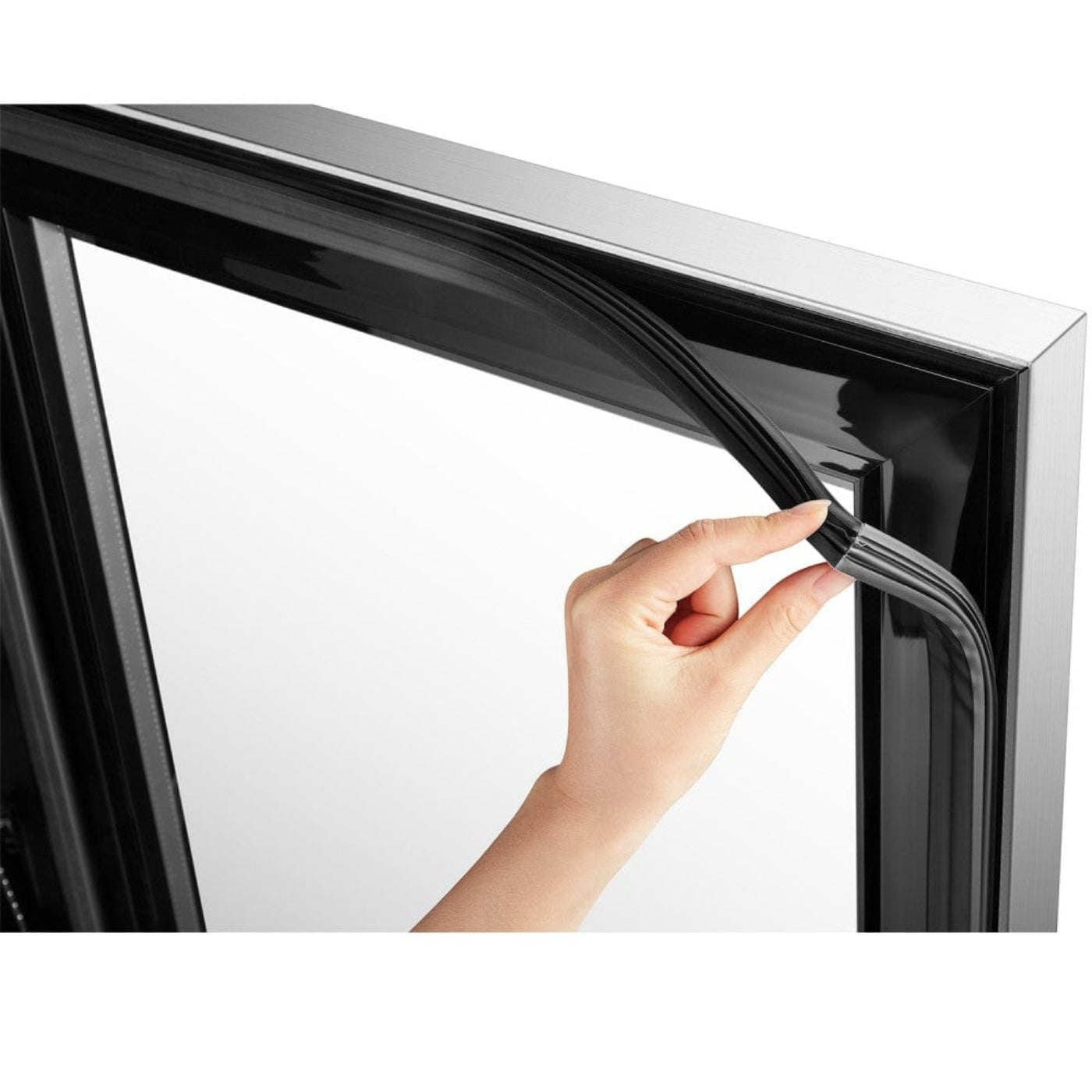 Tempered Glass Door: Transparent tempered glass door finish allows you to see the interior clearly while blocking damaging UV light from entering the cooler and maintaining a constant temperature.