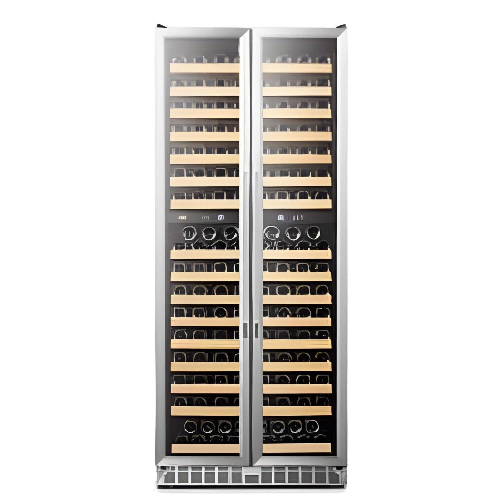 Elevate your wine storage with the Lanbo Luxury 289 Bottles Dual Door Wine Cooler - LW328SD, a masterpiece designed for discerning wine enthusiasts. This dual-zone wine cellar offers ample space to house your cherished wine collection, ensuring each bottle is stored at its optimal temperature for peak enjoyment. Whether you favor robust reds or crisp whites, the dual Low-E tempered glass doors with a sophisticated French design not only add elegance to your space but also protect your wines from harmful UV light, preserving their rich aroma and flavors.