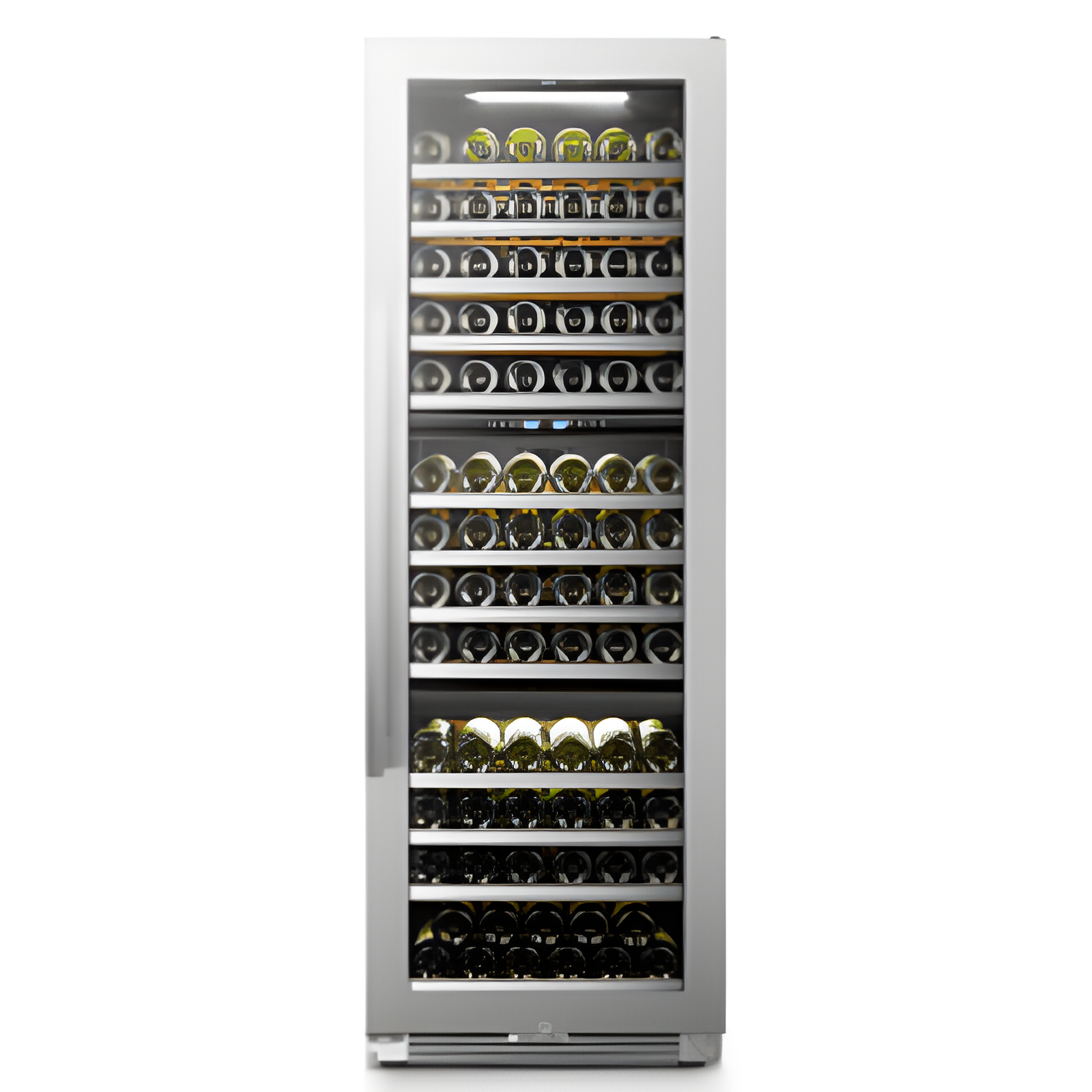 Elevate your wine storage with the LanboPro 143 Bottle Triple Zone Wine Cooler, designed for the serious wine collector. With a substantial storage capacity, elegant design, and advanced cooling technology, this wine cooler ensures your collection is stored in optimal conditions for preserving taste and quality.