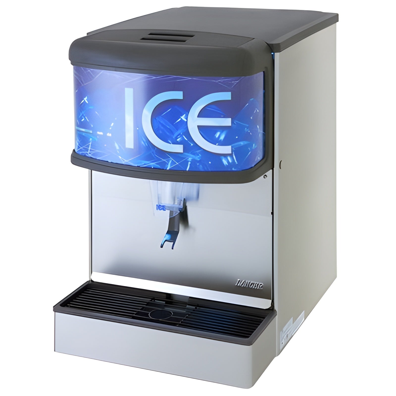 A: A 22-inch wide countertop ice dispenser with an 180 lb storage capacity, designed for commercial beverage service.