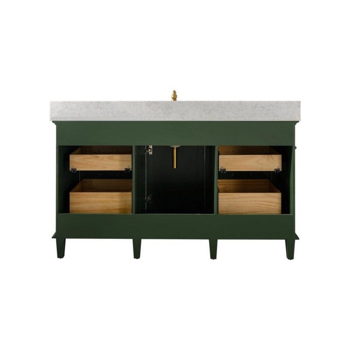 Legion Furniture WLF2160D-VG 60 Inch Vogue Green Finish Double Sink Vanity Cabinet with Carrara White Top Features