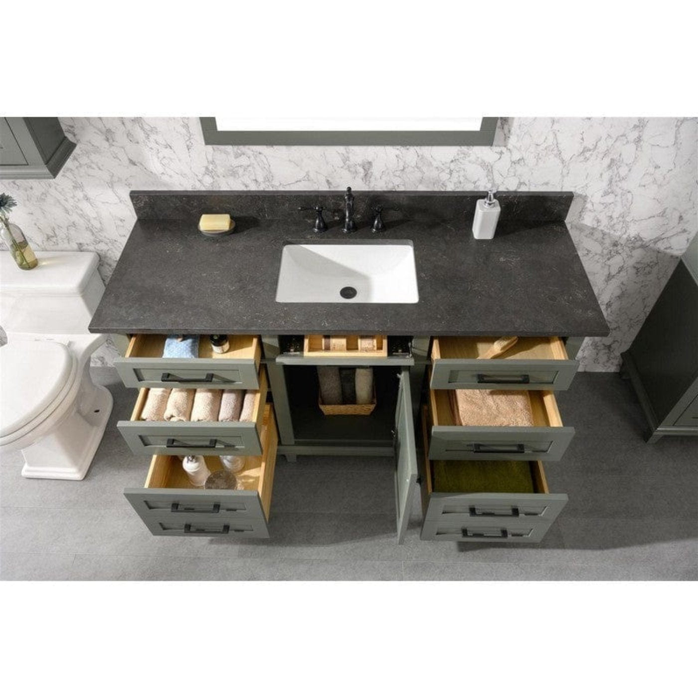 Legion Furniture WLF2160S-PG 60 Inch Pewter Green Finish Single Sink Vanity Cabinet with Blue Lime Stone Top Features