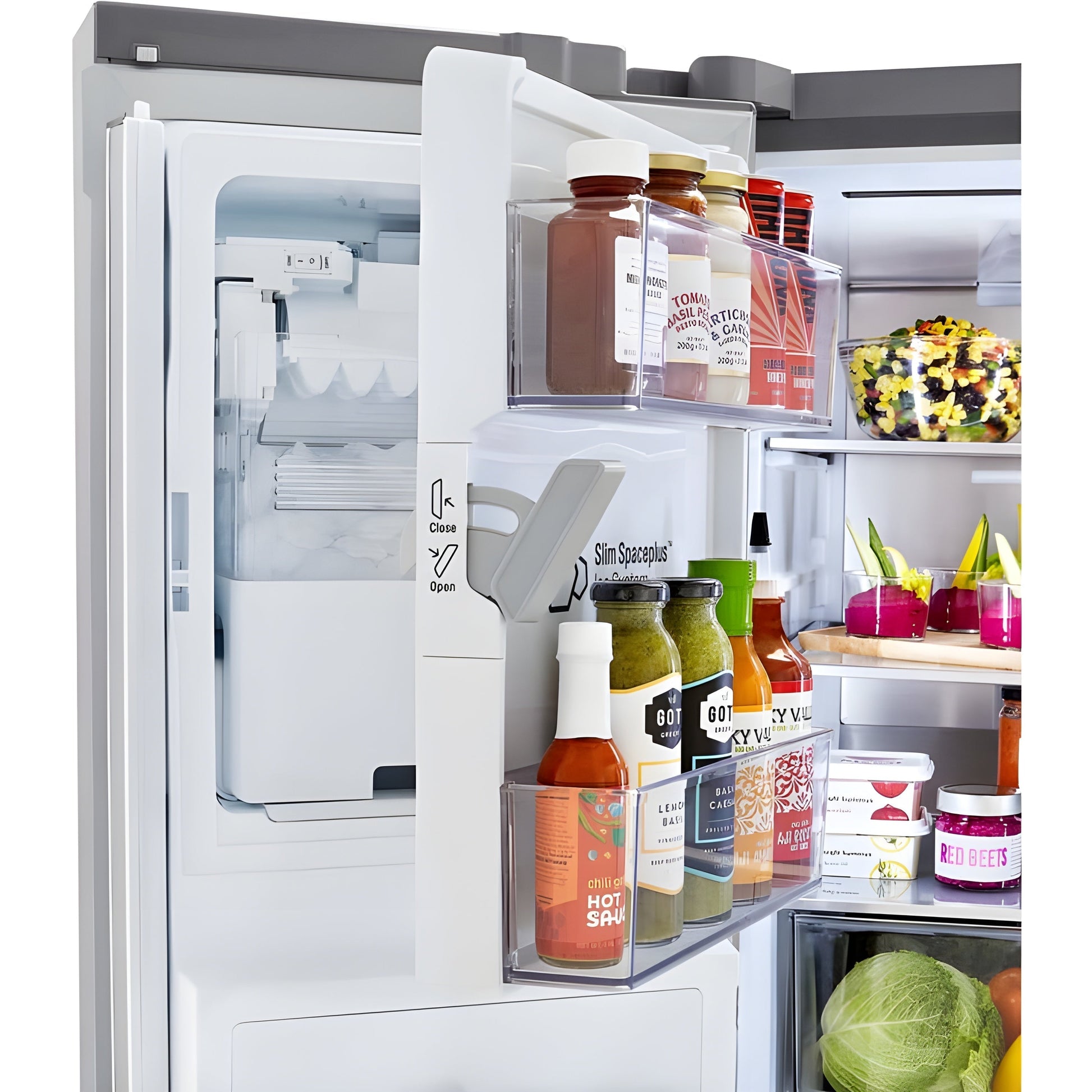 Dual ice makers with CraftIce produce large amounts of ice so you never run out. Finally, a refrigerator that can fill containers of every size. The Measured Fill water dispenser can accommodate everything from small rocks glasses to gallon pitchers. This refrigerator features integrated electronic temperature controls with a smooth white LED display and Micro-Surface LED lighting that beautifully showcases the interior. Door-in-door with an adjustable bin allows you to quickly reach what you need without opening the door and releasing cool air.