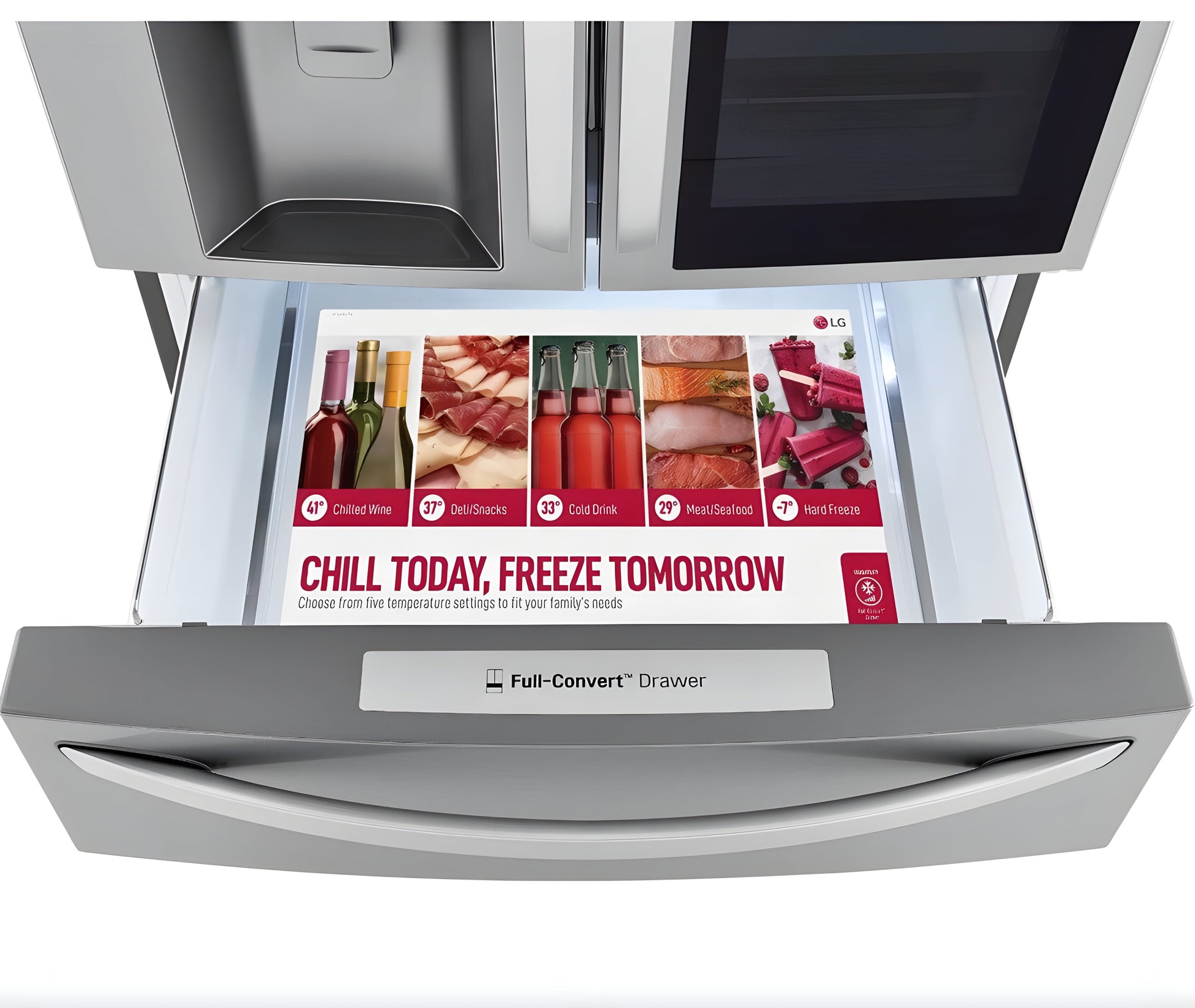 Entertain in style with LG's exclusive Craft Ice maker. Craft Ice melts slowly and elevates your favorite cold drinks to the next level. InstaView Door-in-Door enhances even the most beautifully crafted kitchens, allowing you to see inside the refrigerator without opening the door and releasing cold air. Maintain consistent temperatures in every corner of your refrigerator with Door Cooling+ and the CoolGuard back metal wall.