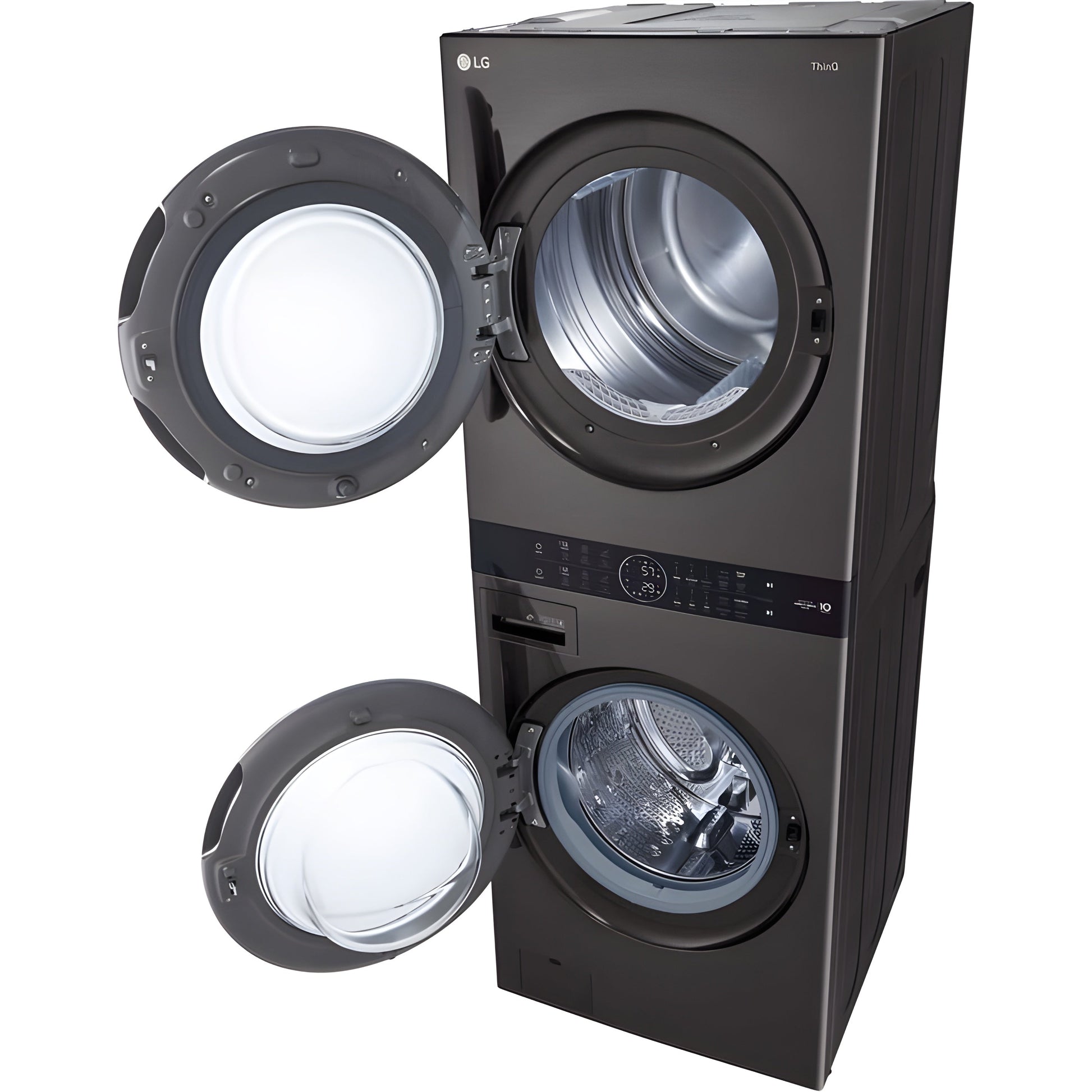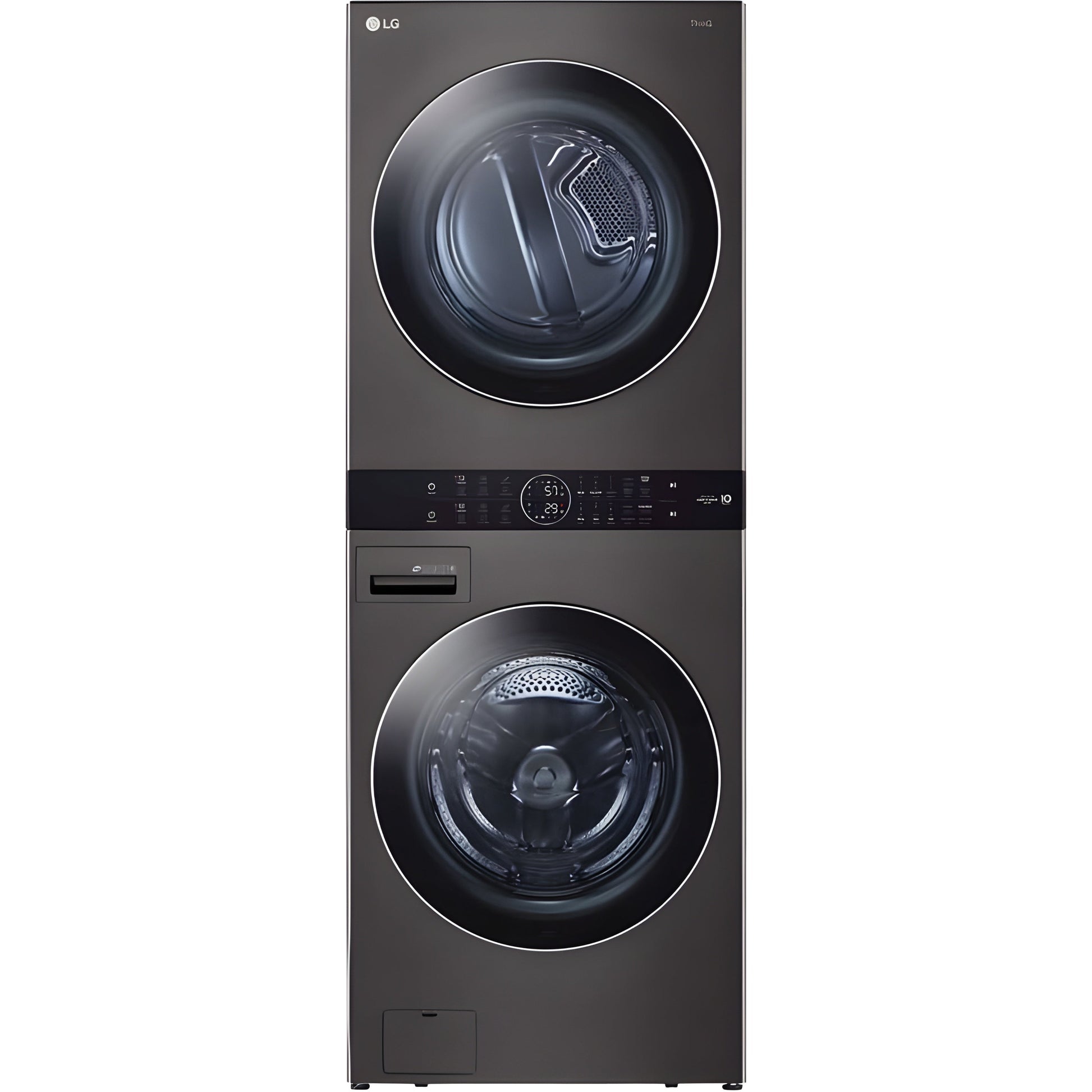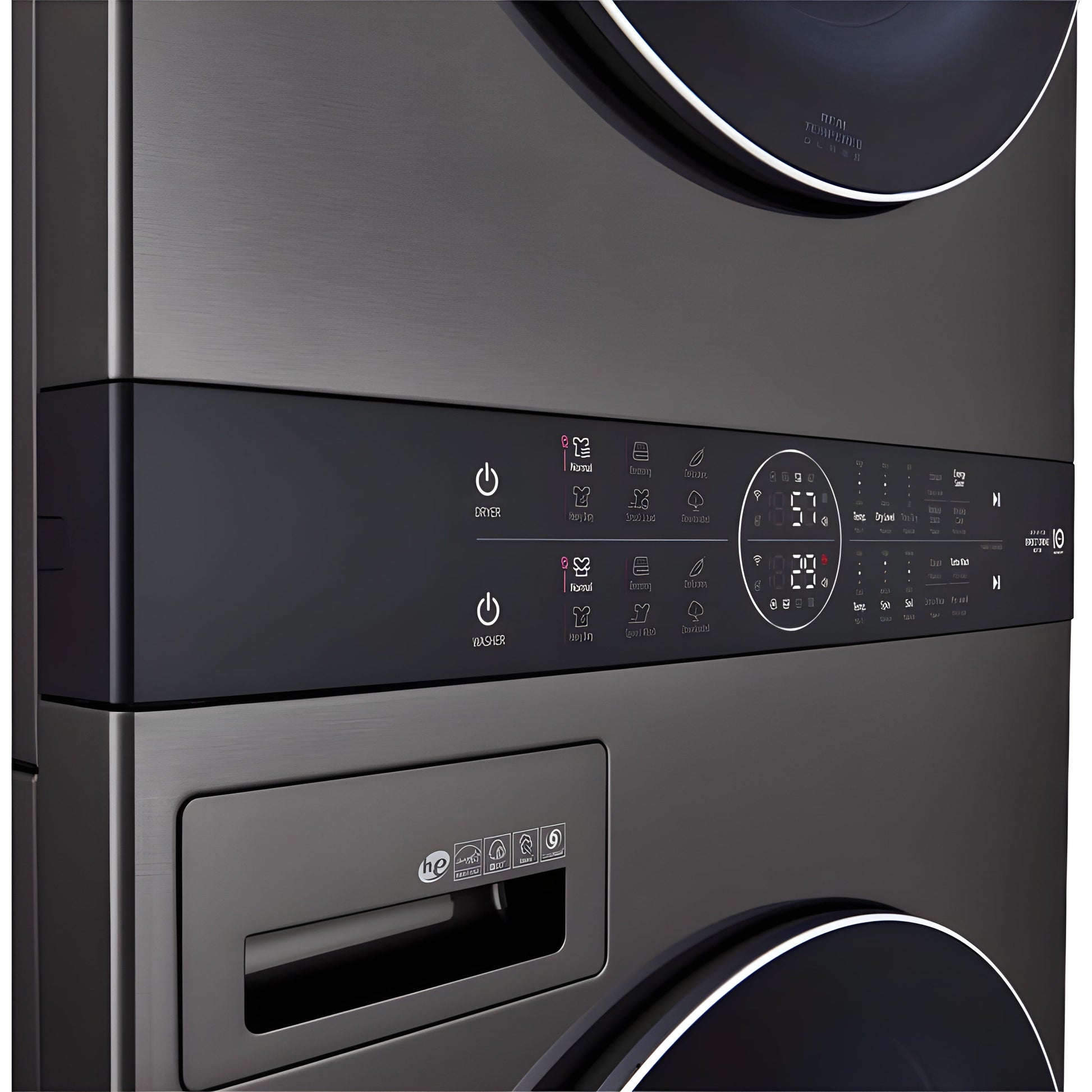 LG Single Unit Electric WashTower with Center Control in Black Steel (WKEX200HBA)