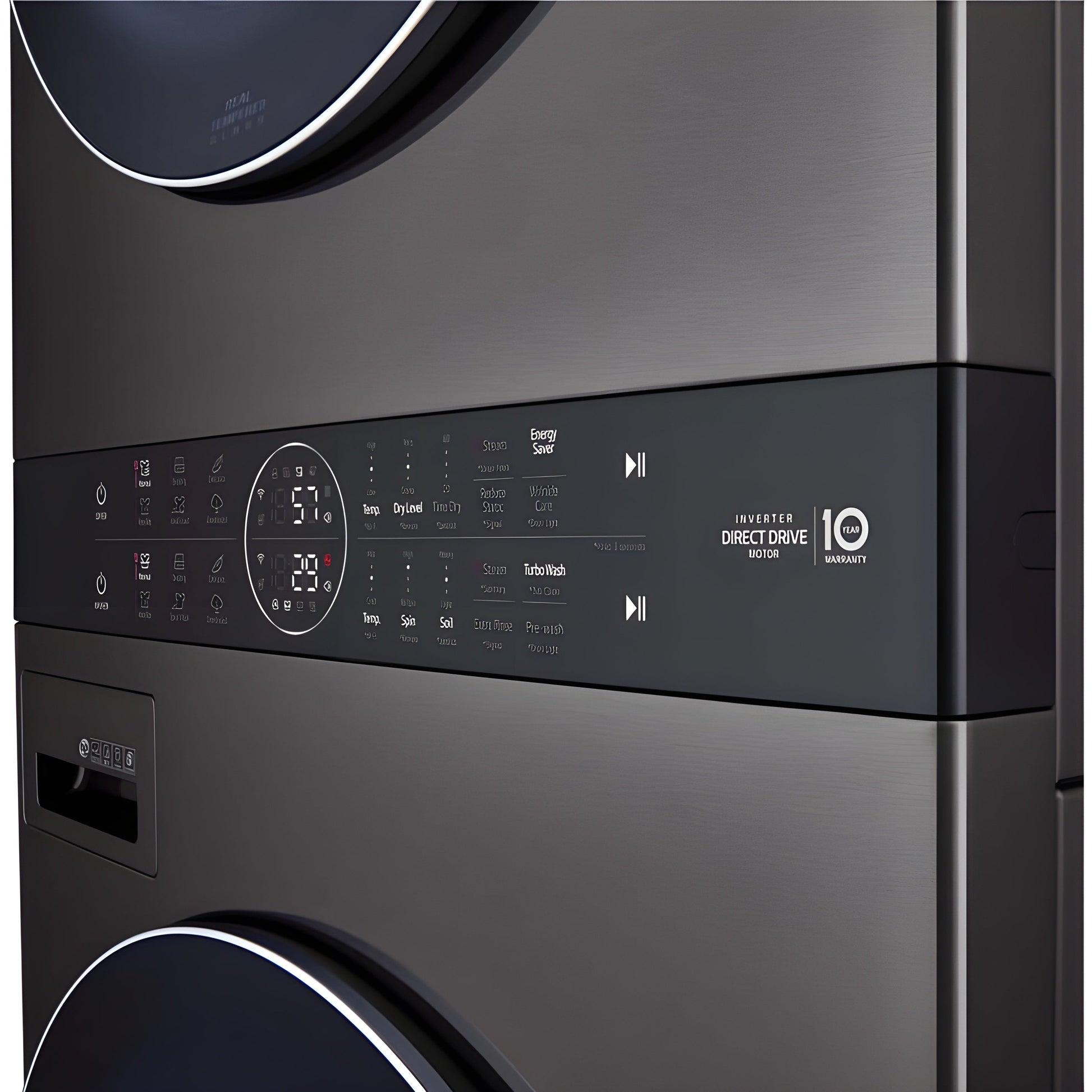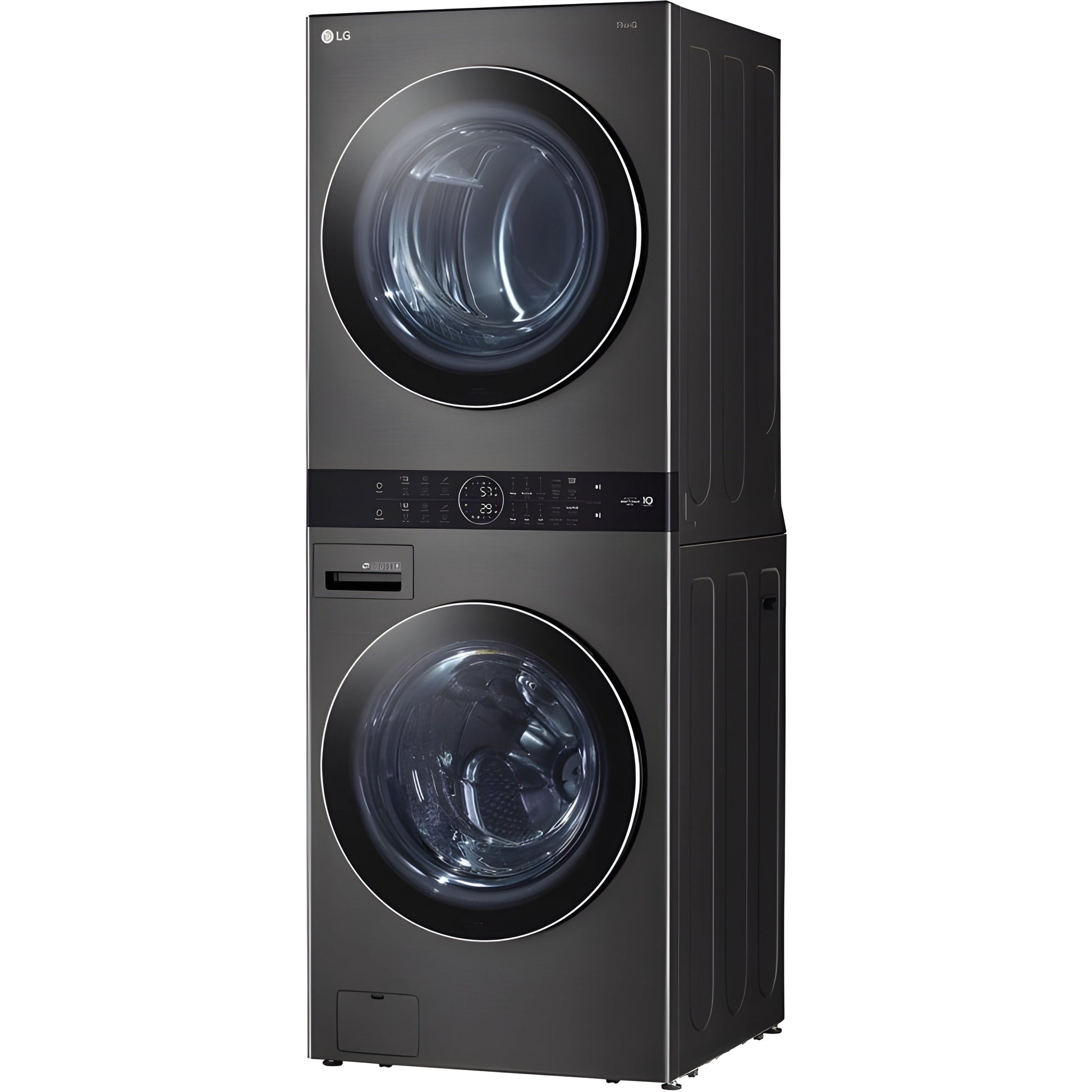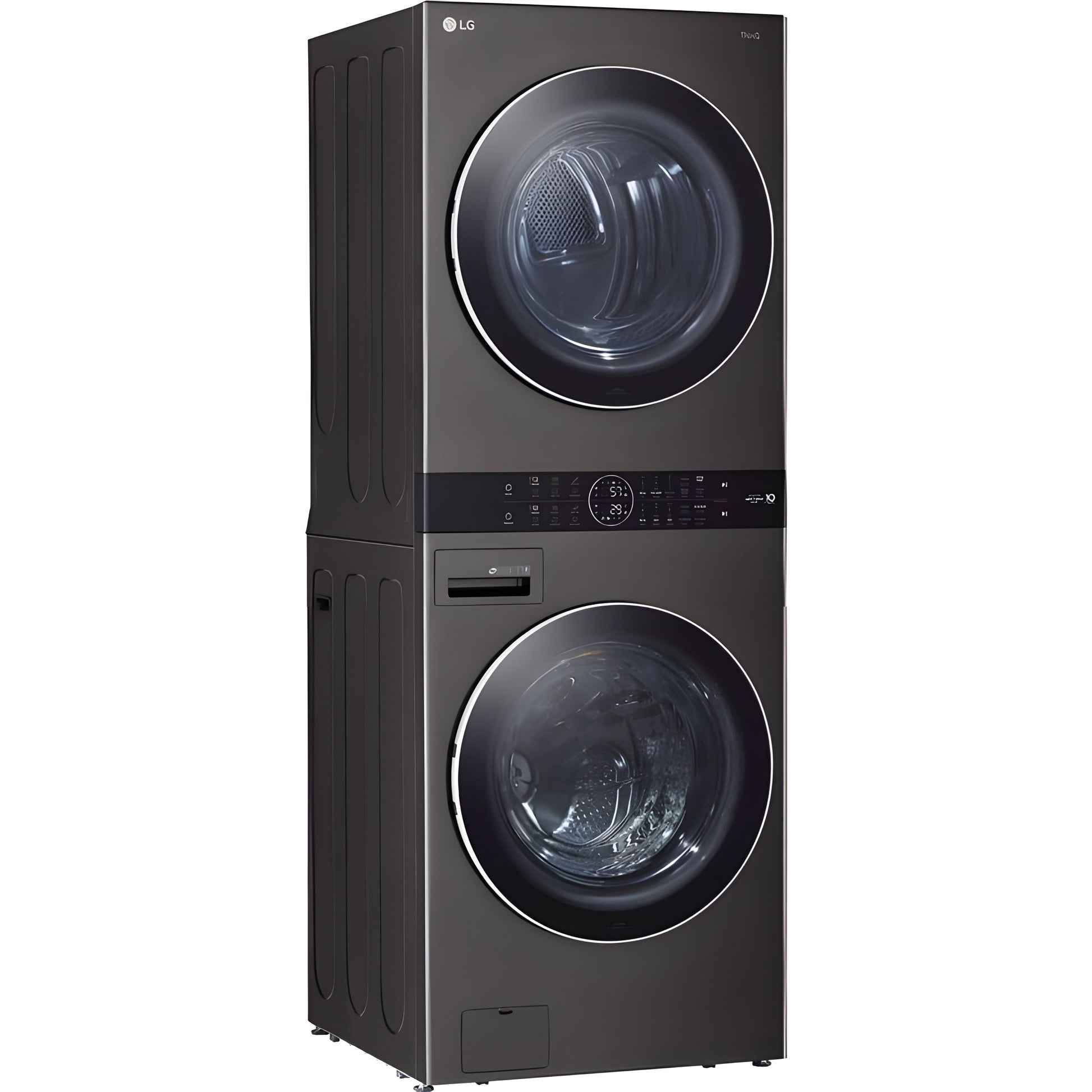 LG Single Unit Electric WashTower with Center Control in Black Steel (WKEX200HBA)