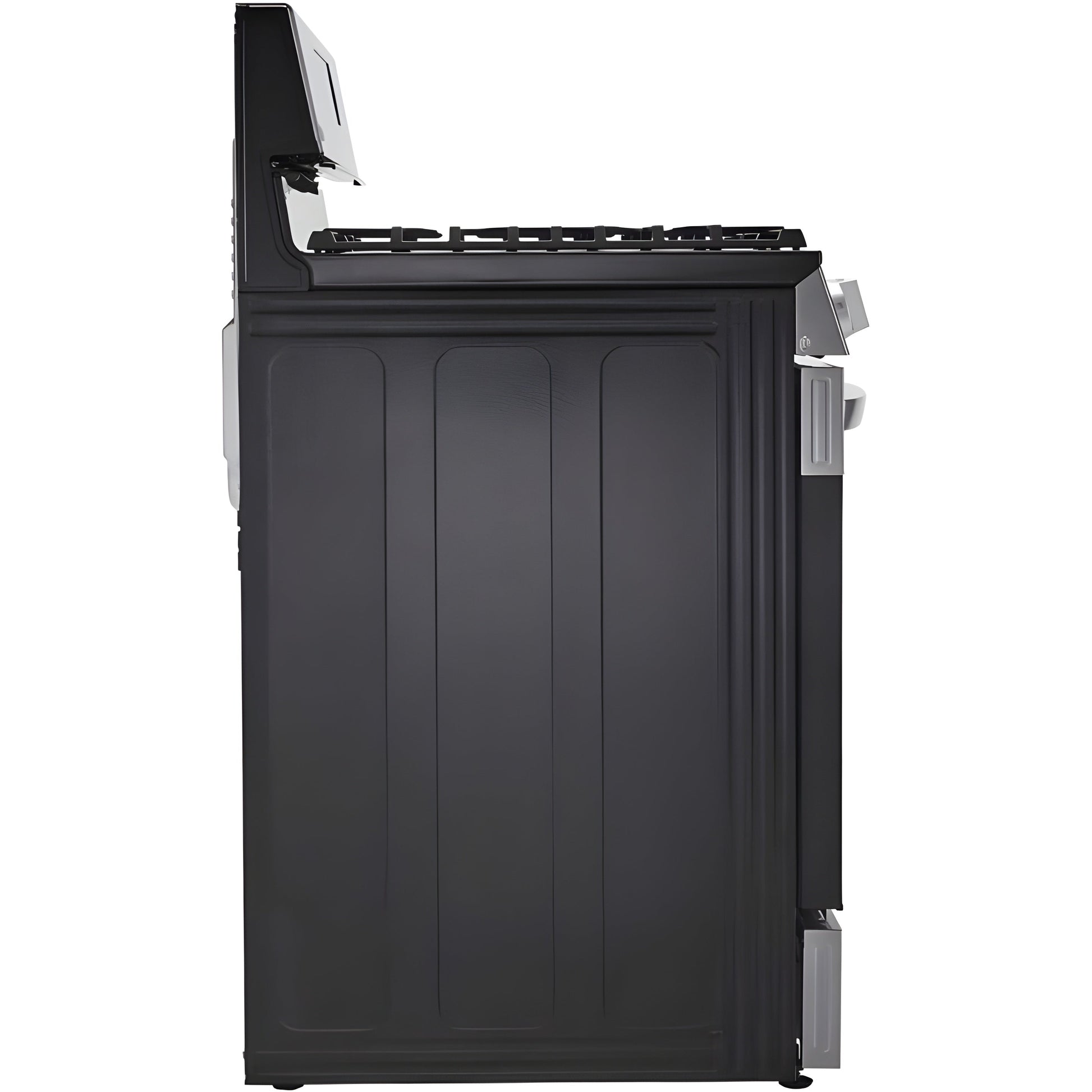 This LG gas range features a large 5.8-cu. ft. interior capacity to perfectly accommodate all of your family's meals. Cook all of your favorite meals across 5 burner elements atop premium wide grates and stainless steel burner caps. The EasyClean feature allows you to spend less time cleaning and more time doing the things you love. Run into any issues? ThinQ and Proactive Customer Care quickly troubleshoot maintenance errors straight from your smartphone. This range is compatible with Amazon Alexa and Google Assistant for a hands-free experience.