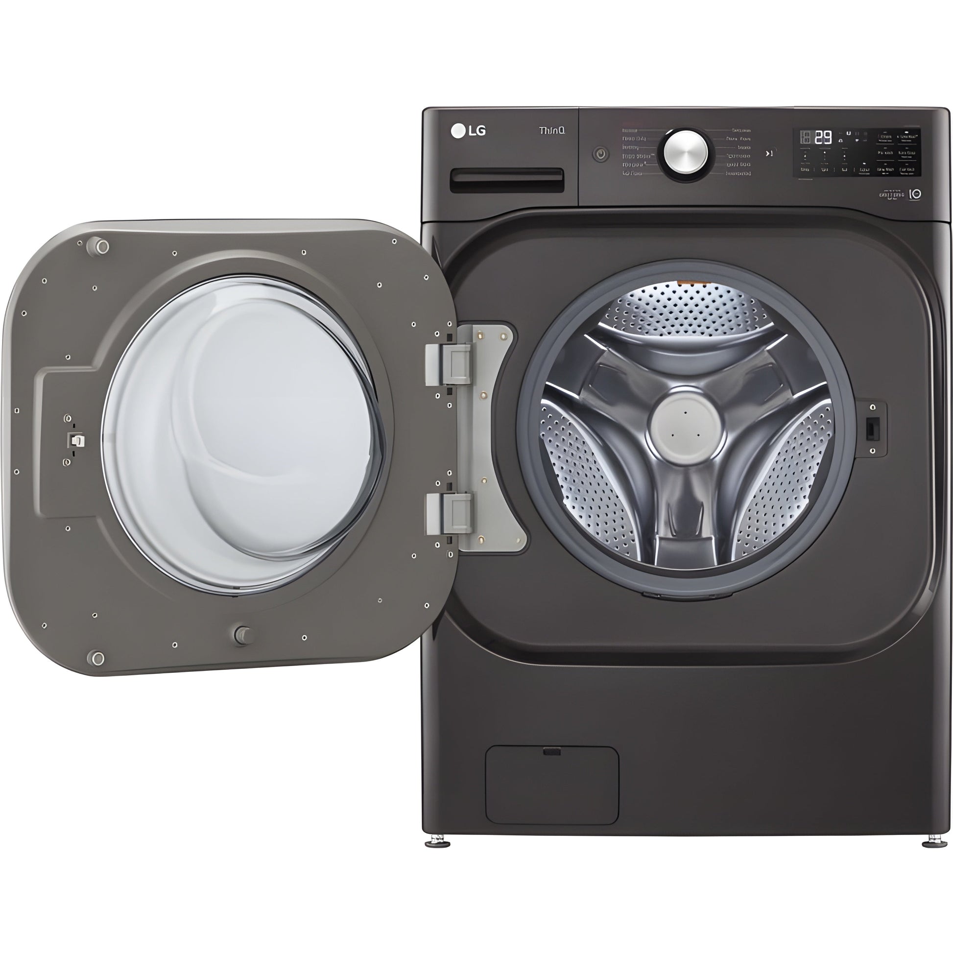 Sleek Black Steel Finish β Adds a modern, sophisticated look to your laundry room while resisting fingerprints for a cleaner appearance.