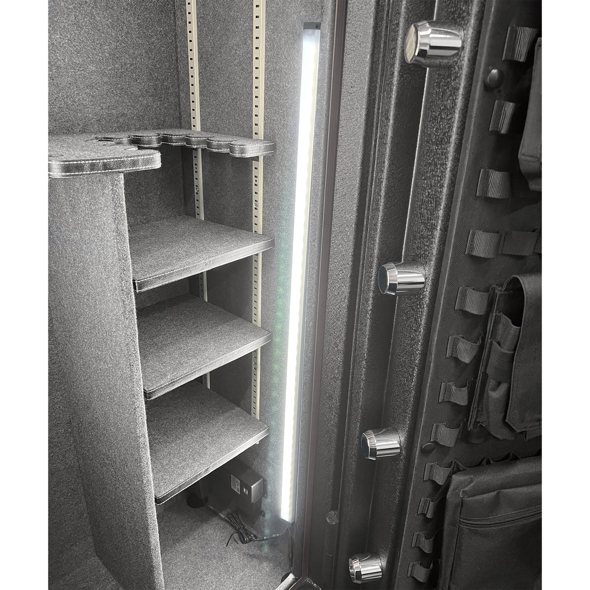 The AMSEC BF2116 comes in a variety of textured and gloss finishes complementing your home decor perfectly. The interior is fully carpeted and comes with one adjustable shelf