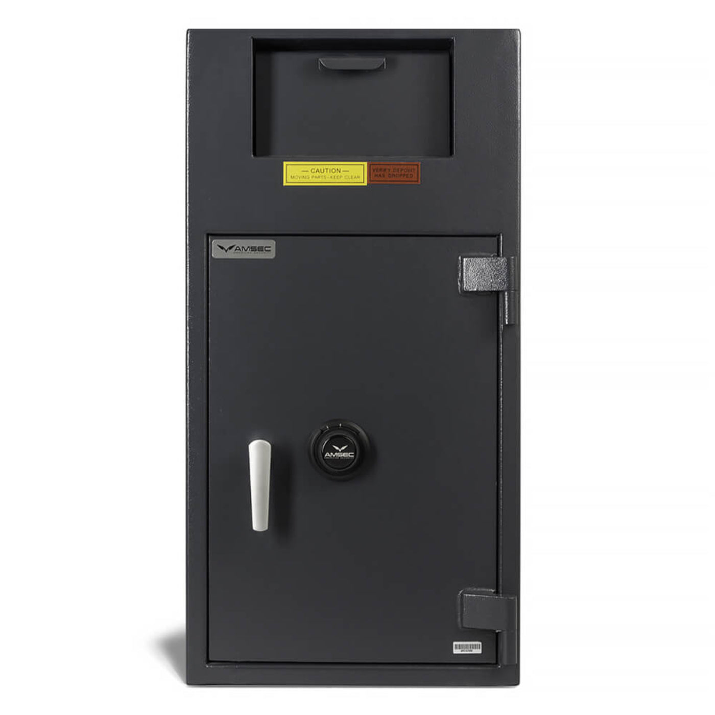 The AMSEC BWB3020FL depository safe is used anywhere you need to have employees drop cash deposits and a place to store change. AMSEC BWB3020FL drop safes are designed to offer complete cash management versatility with a wide selection of options, such as a top, front or rear load depository, one to three deposit slots or a pull-out deposit drawer. This model features the front load depository drop with anti-fish baffle.