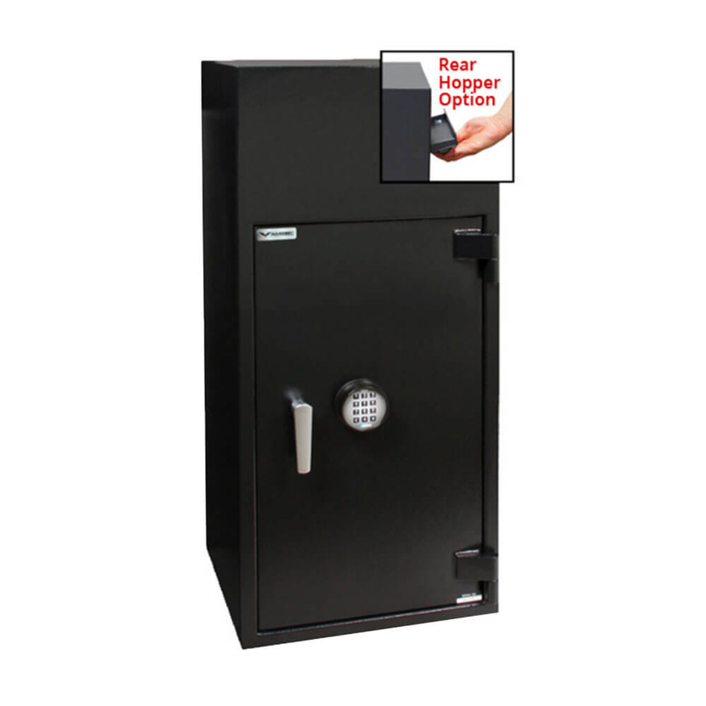 A: Drop safe unit, choice of mechanical or electronic lock, internal locking compartment (optional), and anchor hardware.