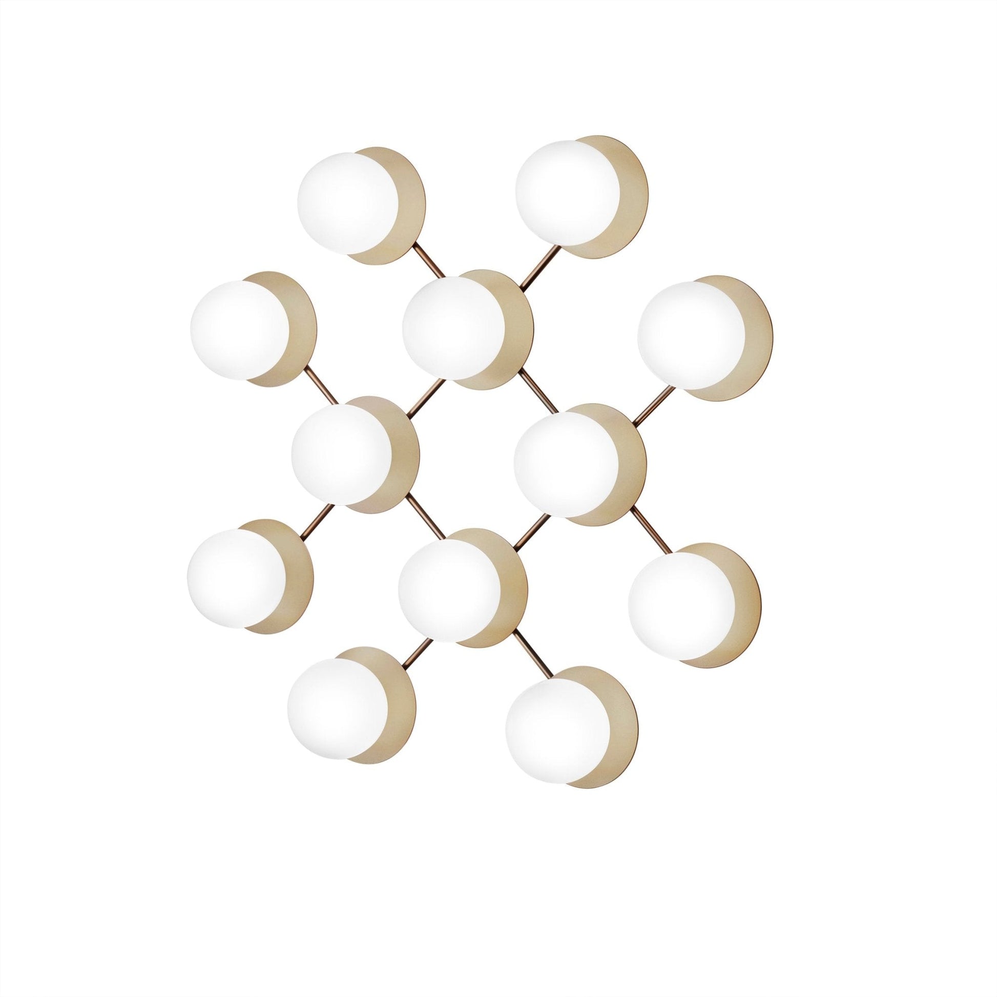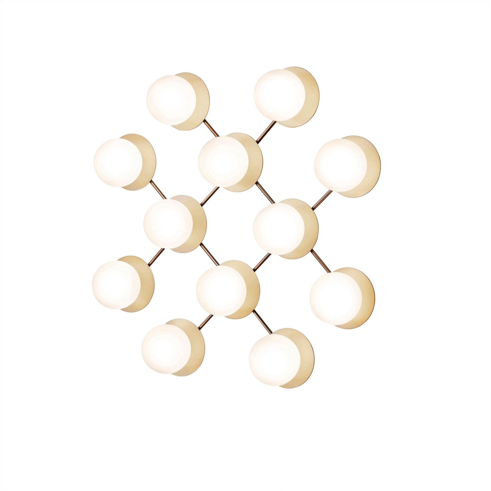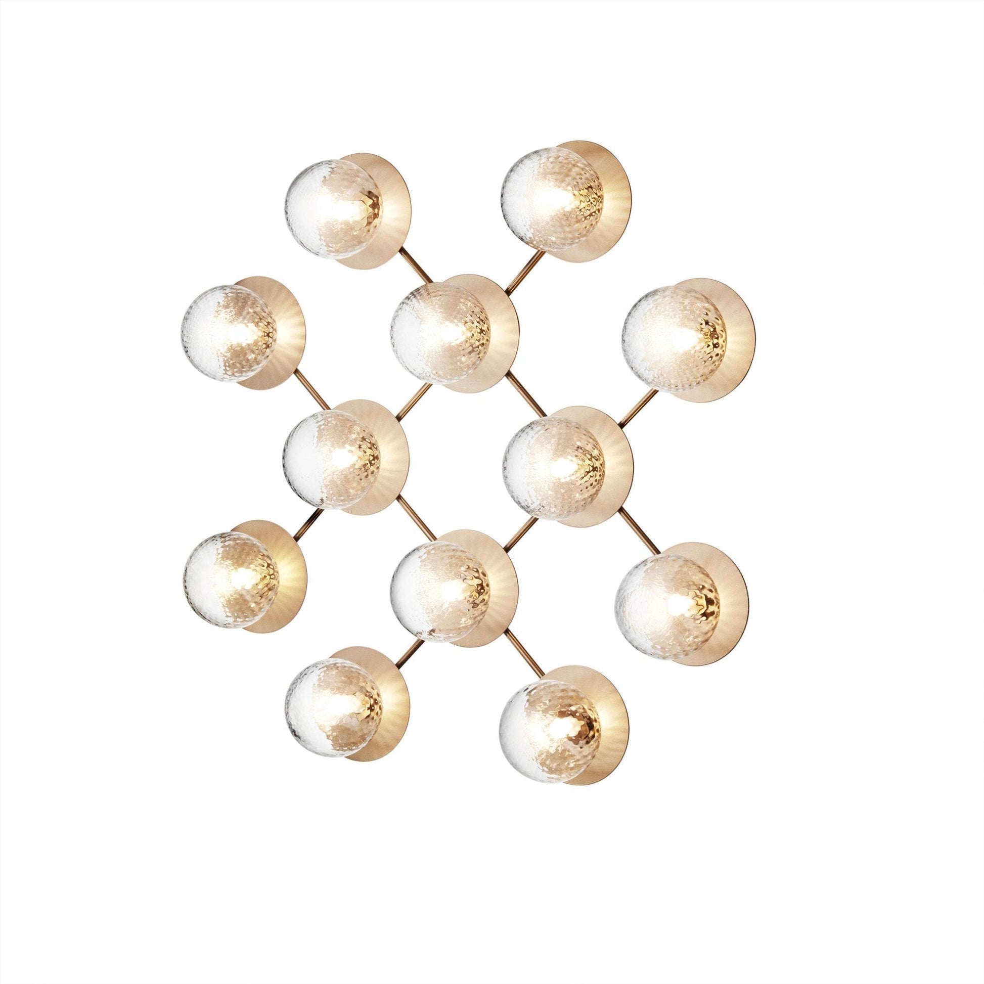 Statement wall/ceiling fixture featuring twelve mouth-blown glass globes in a star-inspired arrangement.