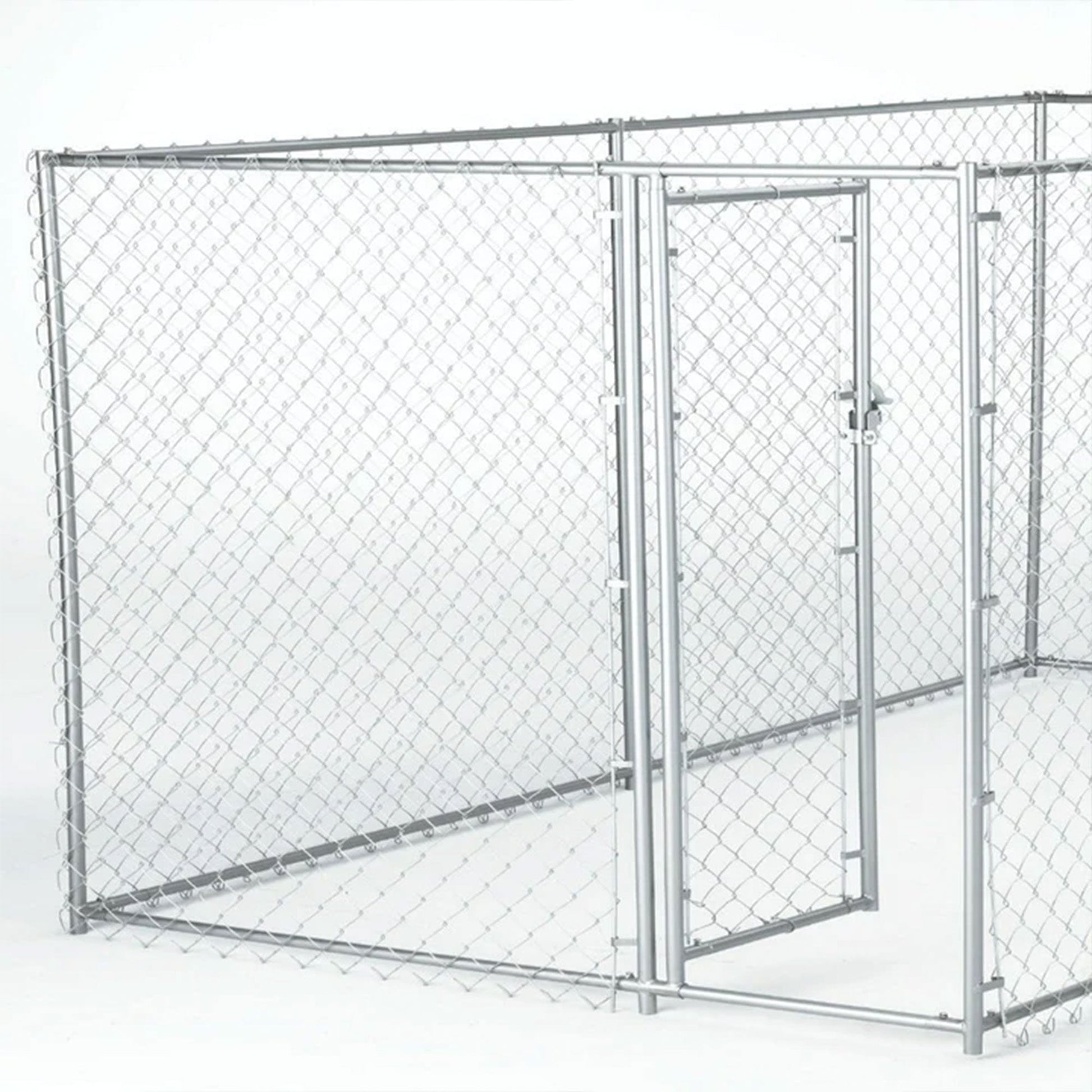 This outdoor dog kennel is functional and flexible with its easy setup for 1 person and 2 design configurations, either 10 by 10 feet or 5 by 15 feet. Constructed out of a durable powder-coated steel frame with a galvanized chain link, this dog playpen is designed to withstand heavy outdoor use in all kinds of weather. It measures 6 feet in height with a built-in door for easy entry and exit, as well as a 1.5 raised leg height, so it's easier to sweep or hose out.