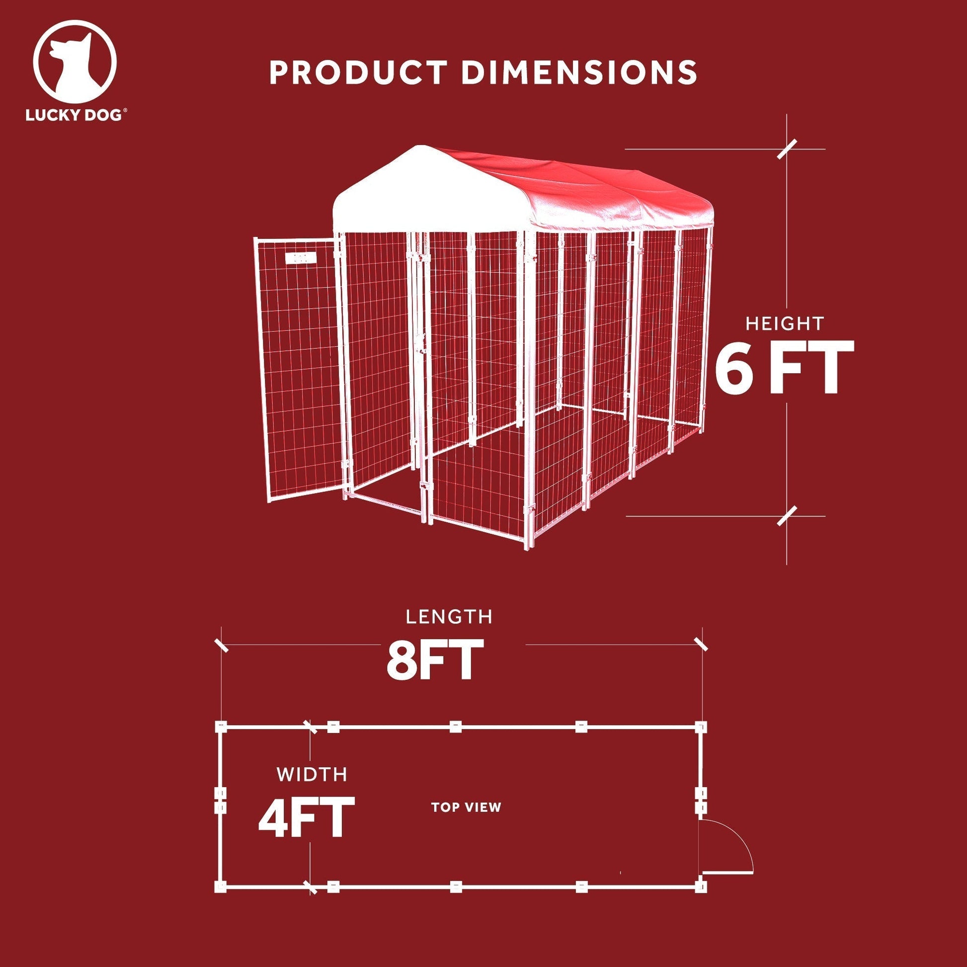 Durable & Secure: The Lucky Dog STAY Series 4 x 8 x 6 Foot Roofed Steel Frame Villa Dog Kennel is constructed with a strong steel frame and rust-resistant materials, ensuring longevity and security.