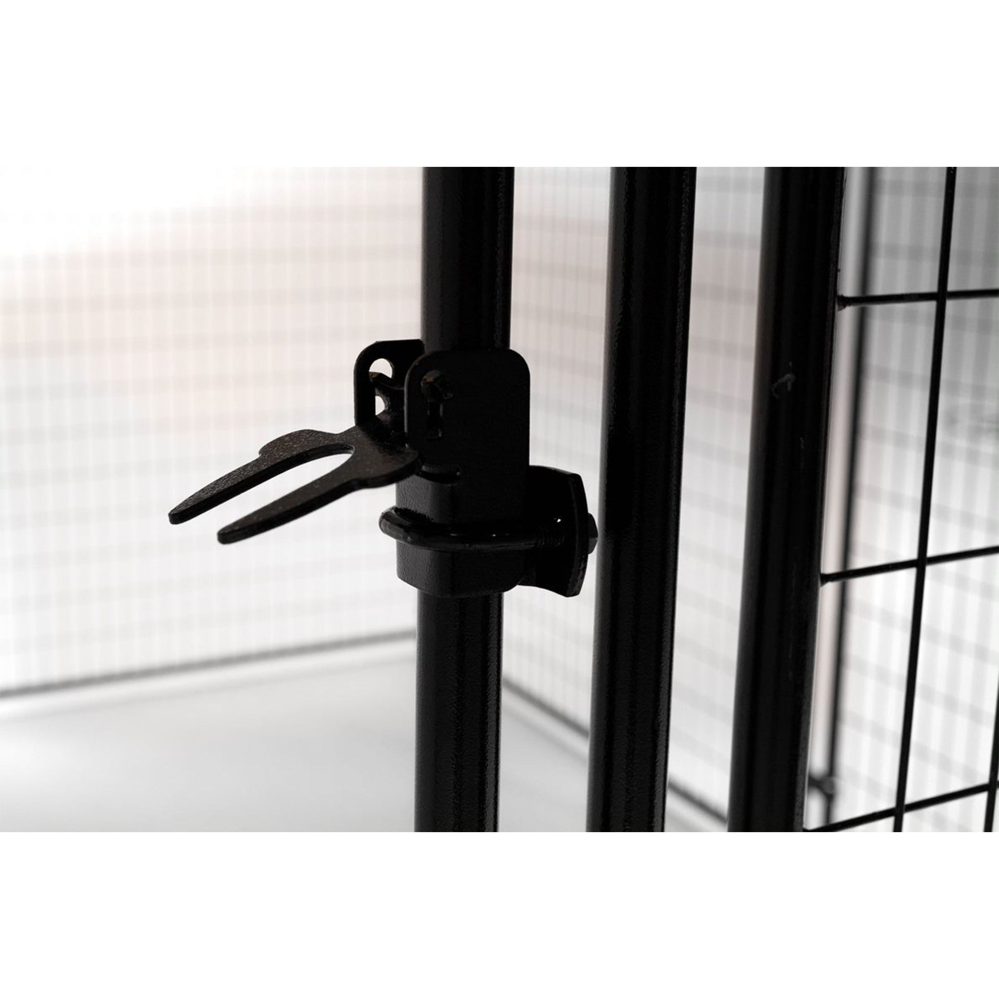 The pen is designed for ultimate comfort. A waterproof, high-density polyester cover protects your little friend from the elements, perfect for long stays outdoors. For both your comfort and your pet's, the kennel has a premium design that looks great in your yard. The kennel resists weathering thanks to its durable steel frame and powder-coated finish. Hidden Velcro attachments hold the roof cover to your kennel. A dual access gate door allows you to throw in treats or toys without having to worry if your pet will run free.